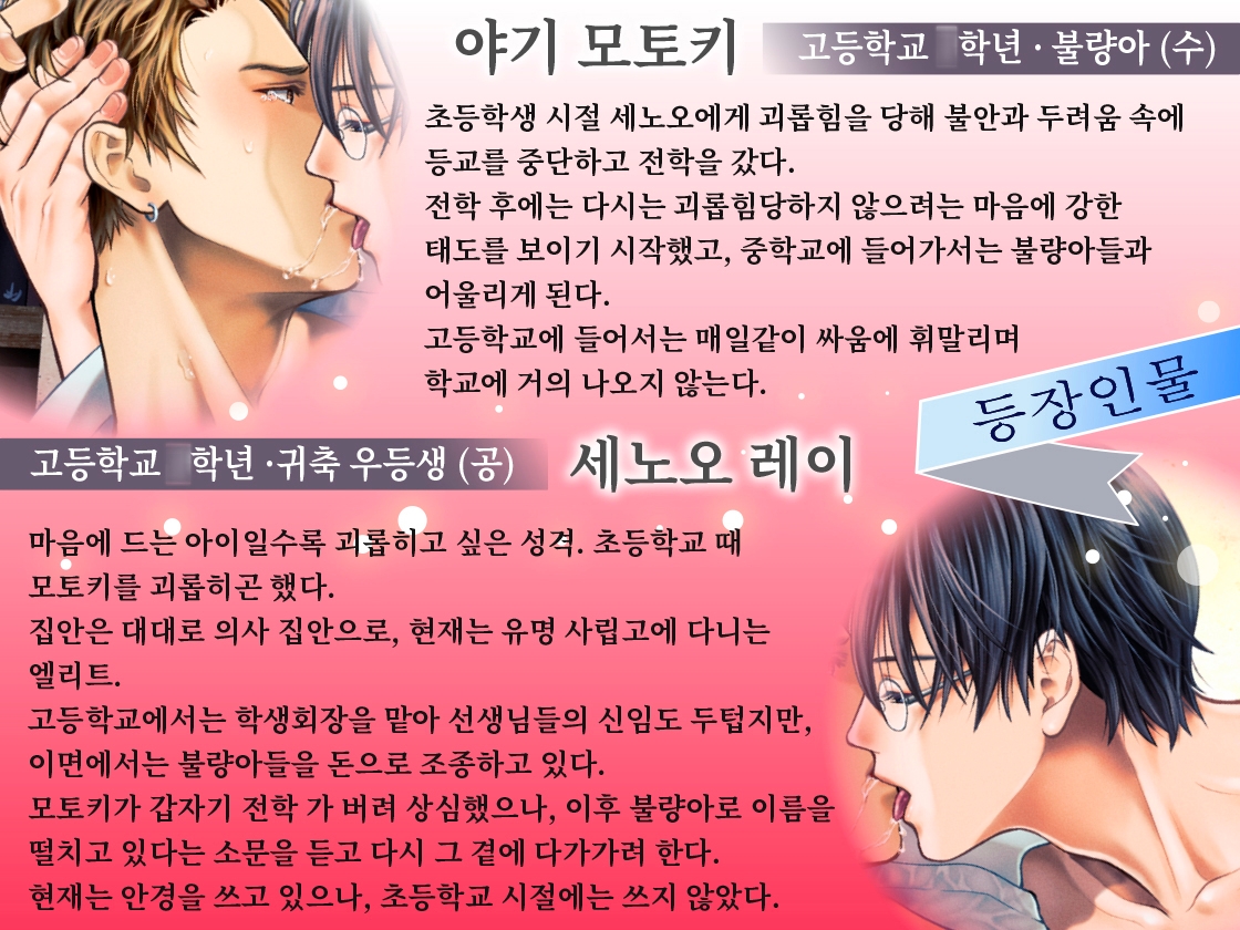 고등학교에서는 학생회장을 맡아 선생님들의 신임도 두텁지만, 이면에서는 불량아들을 돈으로 조종하고 있다.