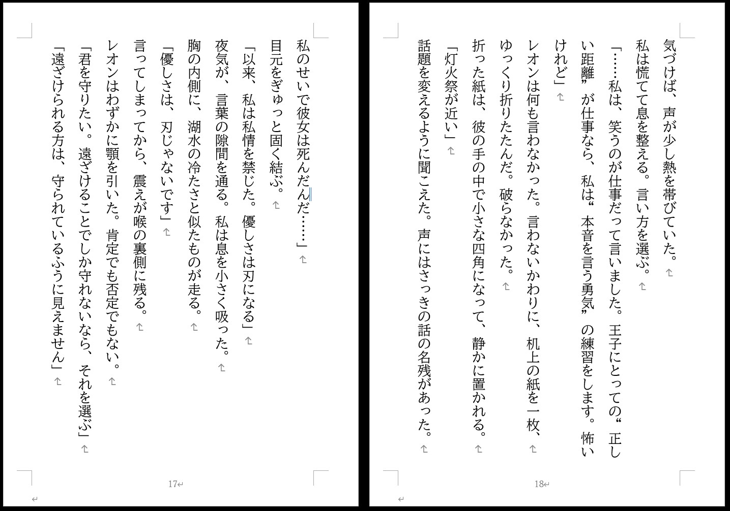 敵国に“名誉人質”として送られた王女エリシアは、規律を重んじる王子レオンと互いに惹かれながらも、立場や噂に阻まれ“正しい距離”を守り続けていた。 しかし灯火祭の夜、勇気を出して手袋を外した瞬間から、その距離は少しずつ変わっていく――優しさを罰にしないと誓い、素手で確かめた温度と共に歩む、切なく温かい恋物語。