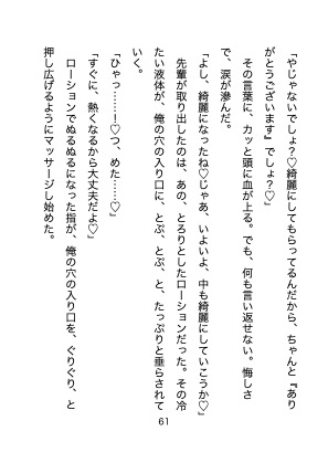 アナル開発、公開調教、言葉責め……。甘やかで過激な「レッスン」の果てに、彼がたどり着くのは、絶望か、それとも新たな悦びか。