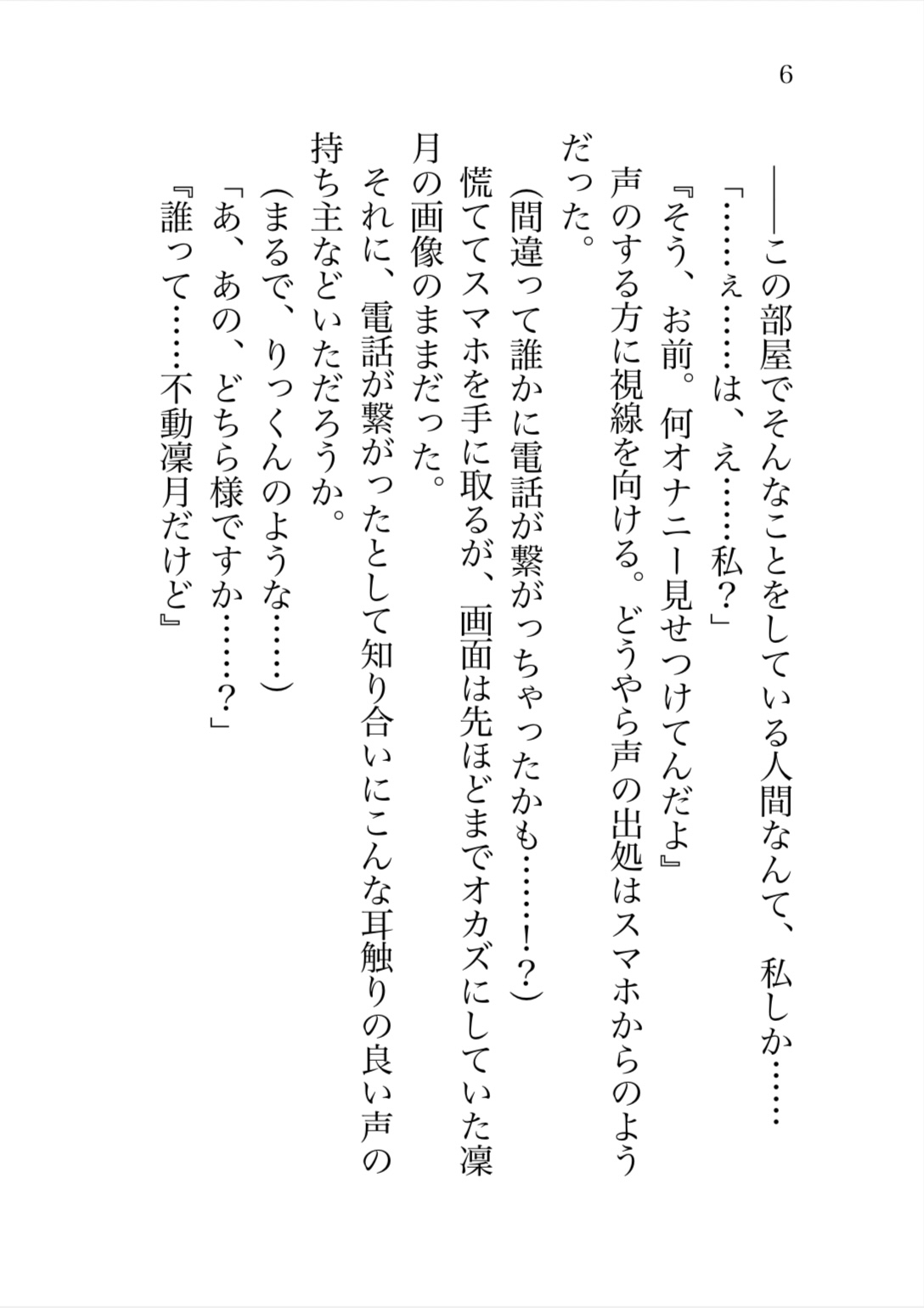 凜月に触れられる妄想をしながらオナニーをしていた朝陽だったが、突如スマホから男性の声が聞こえて話しかけられる。