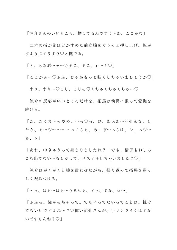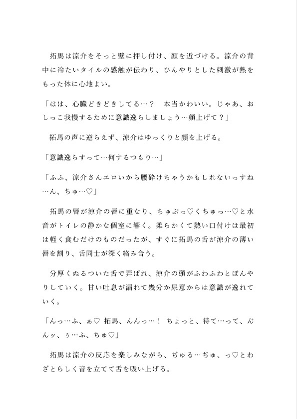 ■攻め…水上拓馬(みずかみたくま)26歳 涼介の部下 生意気だが努力家。堅物上司な涼介が押しに弱いのを良いことにエッチな要求ばかりする。