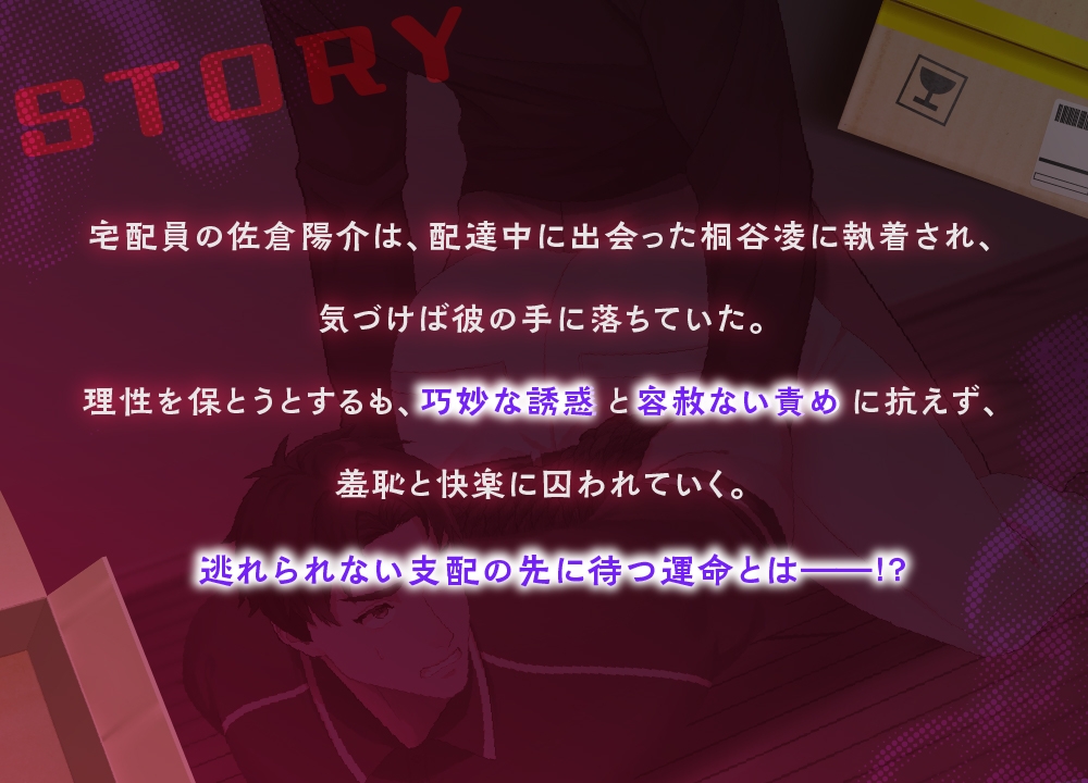 택배기사 사쿠라 요스케는 배달 도중 만난 키리타니 료에게 집착당하고, 정신을 차렸을 땐 이미 그의 손아귀에 있었다. 이성을 지키려 애써보지만, 교묘한 유혹과 집요한 압박에 저항하지 못한 채, 수치와 쾌락 속에 점점 잠식되어 간다. 벗어날 수 없는 지배의 끝에 기다리는 운명은 과연──!?