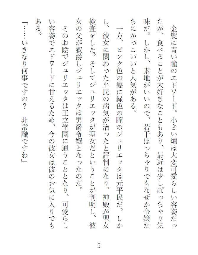 公爵令嬢で、エドワードの婚約者。聖女の力がある。