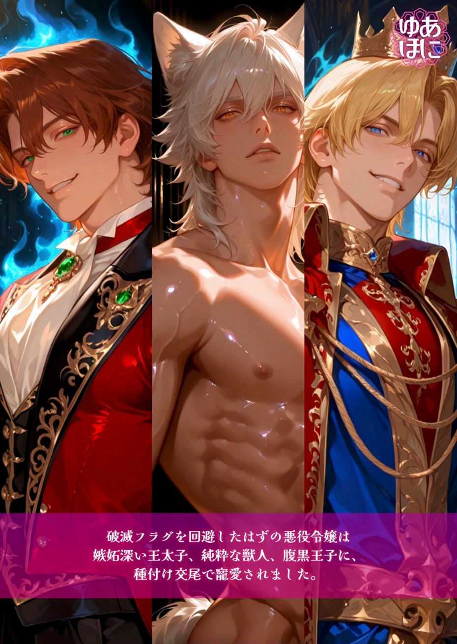 これは、破滅を回避したいだけだった悪役令嬢が、タイプの違う三人の執着系王子様に見出され、その歪で底なしの愛情によって昼も夜も奪い合われ、最終的には三人同時の種付け交尾で子宮ごと蕩かされてしまう、背徳と快感に満ちた濃厚寵愛ハーレムストーリーです。