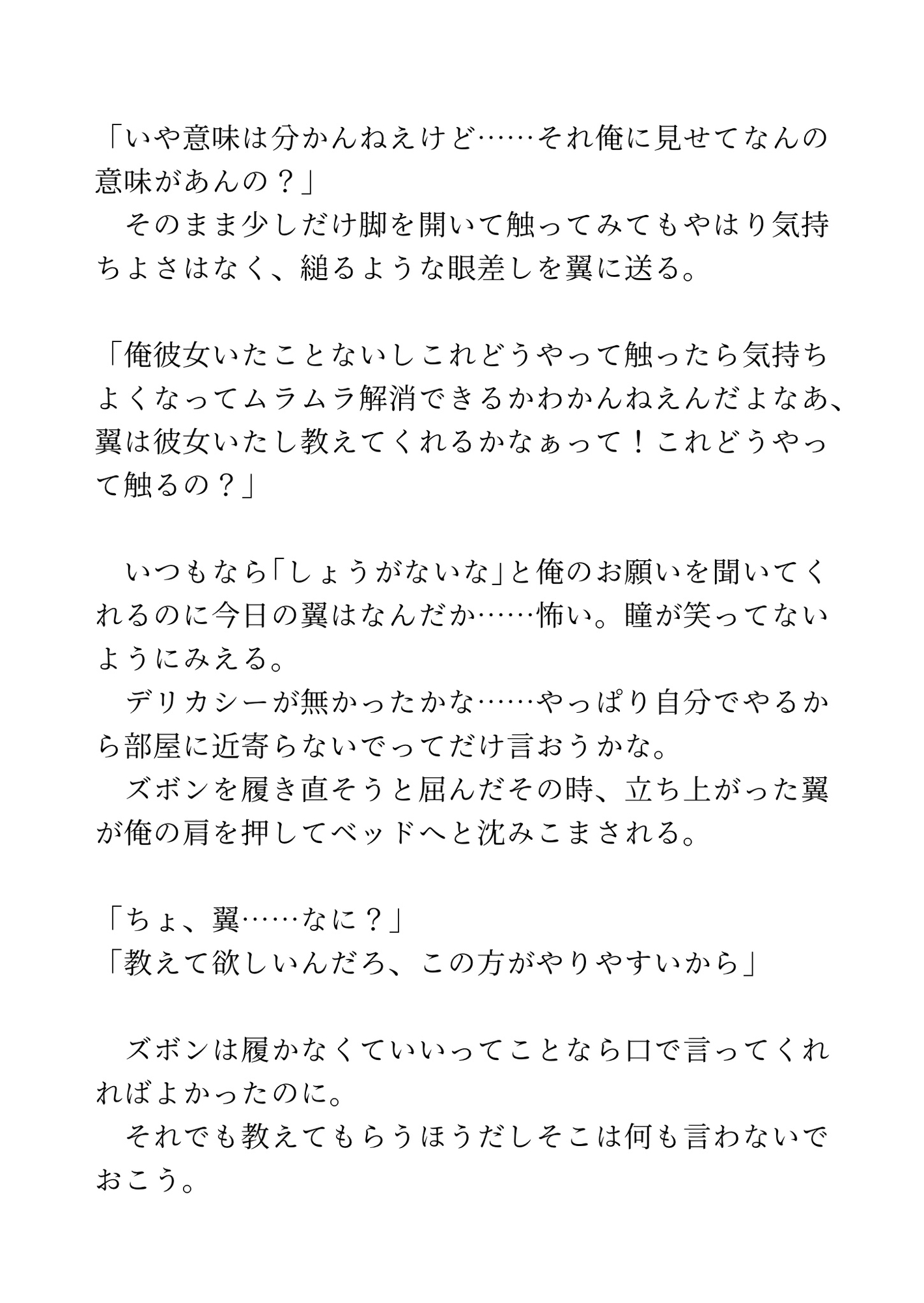 →気がついたらカントボーイになっていた。溜まる性欲の解消のために幼なじみにオナニーの仕方を教えて欲しいと頼む。