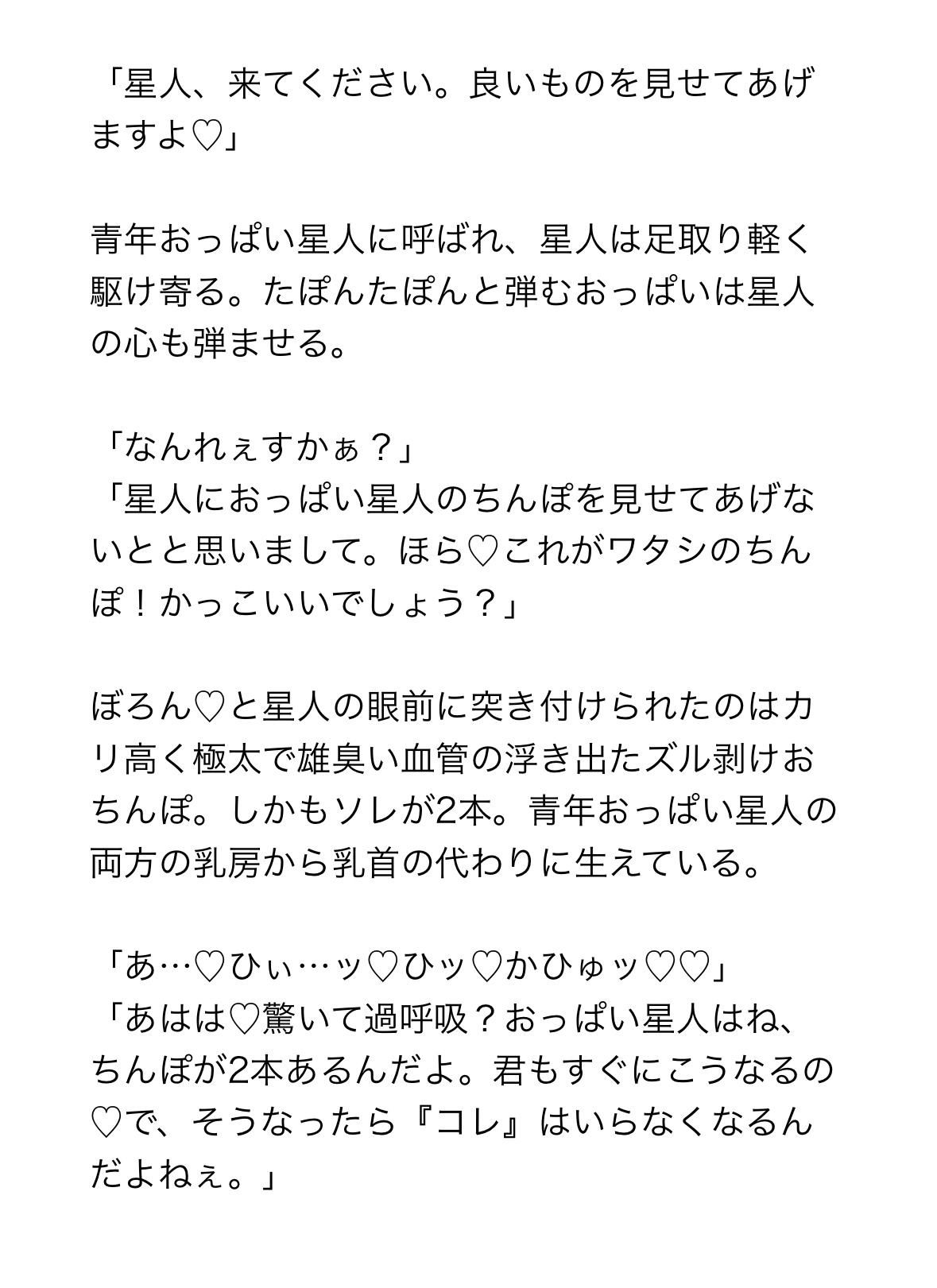 宇宙人雑誌のジャーナリストが宇宙から襲来したおっぱい星人に拐われた!宇宙船の中でドスケベアブダクション。巨乳おちんぽ乳首のおっぱい星人に肉体改造されちゃった!