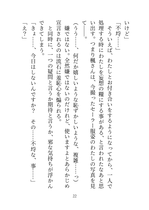 「高校時代の制服姿を見たい」と楓に言われたので、卒業後五年目にして久々のセーラー服に袖を通す事に……。