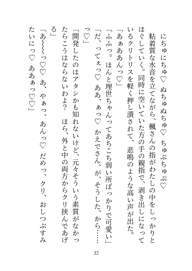 ハート喘ぎ、濁点喘ぎ、隠語表現、地の文での擬音語表現あり。Pixiv