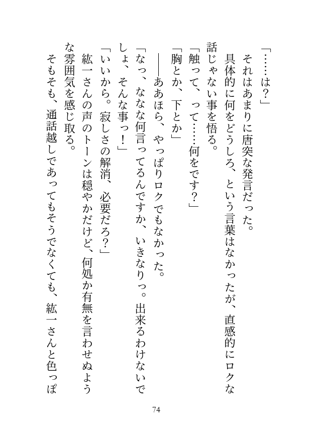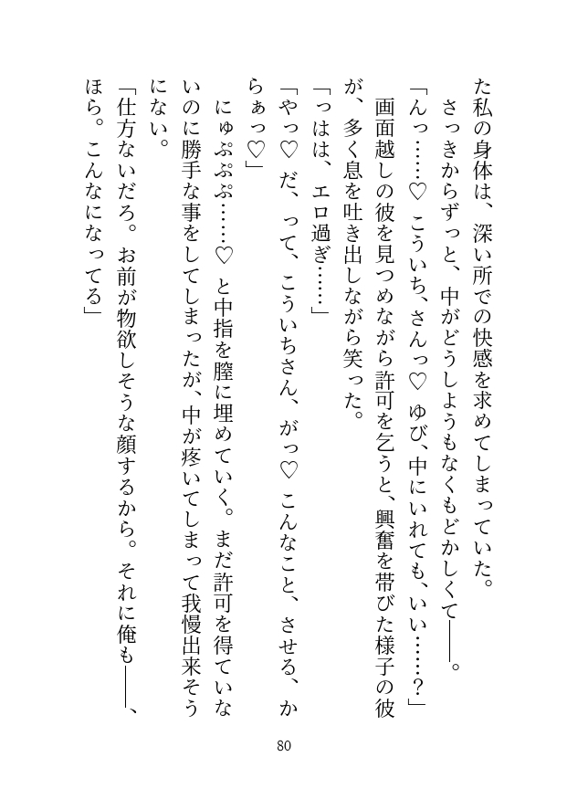 やがて二人はビデオ通話を使って、遠隔セックスという名の自慰見せ合いプレイに興じる事に……。