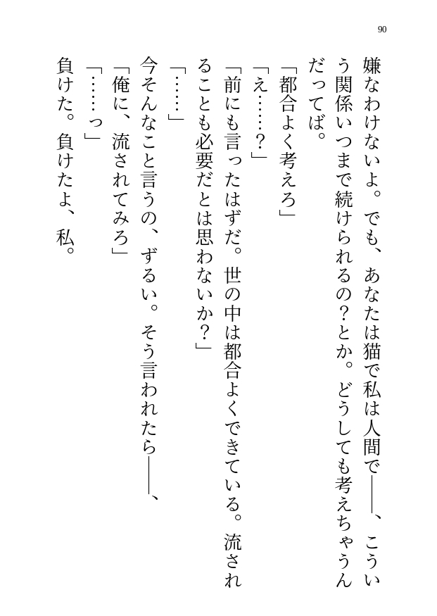西暦21XX年、近未来都市東京。人間の仕事が少なくなってしまったこのご時世、私はガールズバーの店員として働いていた。そんなある日、脚に怪我をした野良猫が店の裏口に。繁華街でたまに見かけていたその猫は、隻眼のボス猫。家に連れて帰り「明日動物病院に連れて行かなきゃ」なんて思っていたら、なんと猫が大柄なイケメンに変身して!? 俺様気質の彼に、私は次第に惹かれて……いや、翻弄されてしまう事態に!