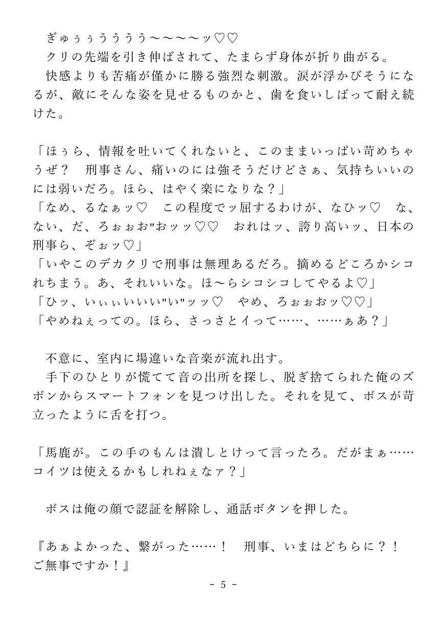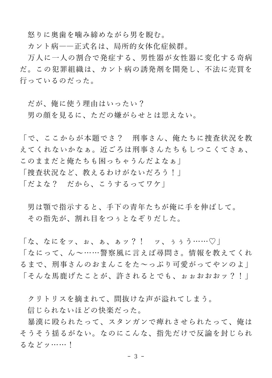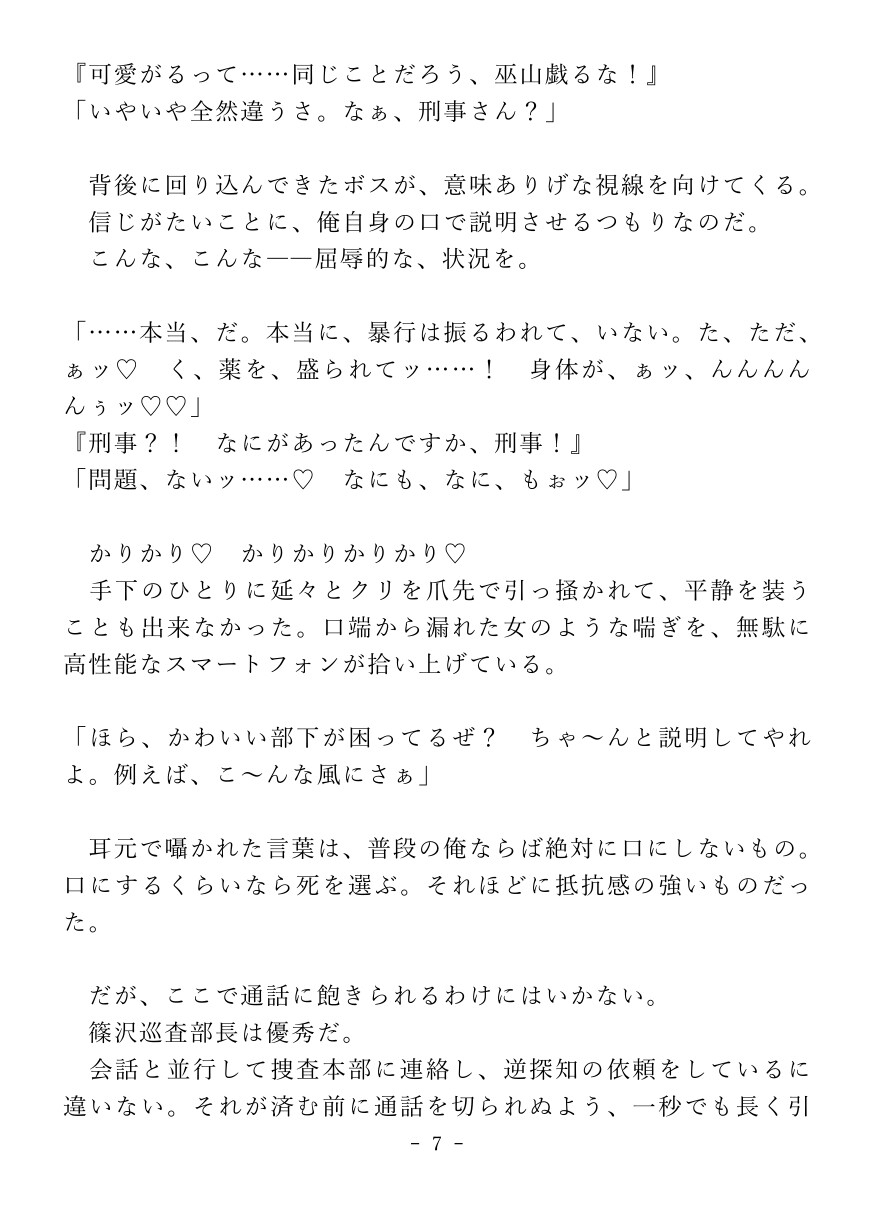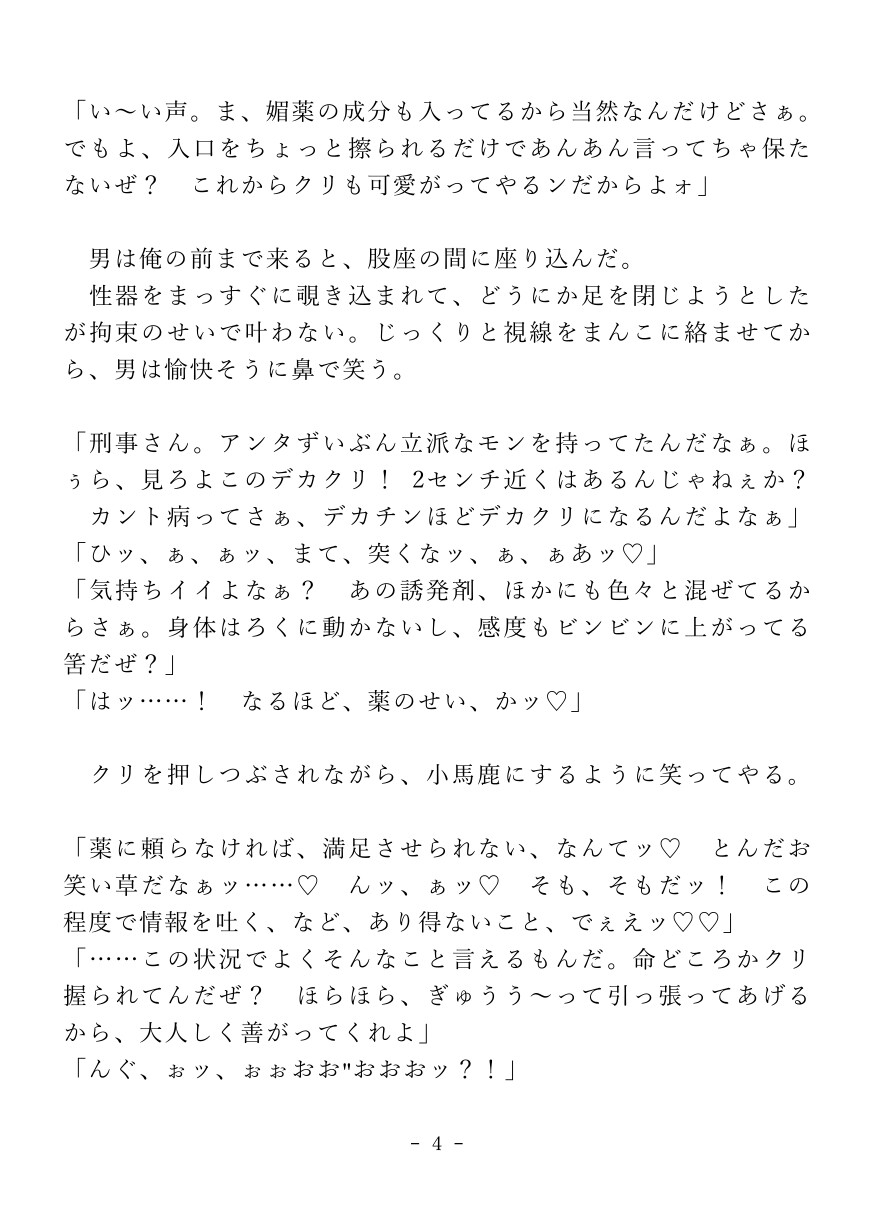 薬物で強○的にカントボーイ化させられた堅物刑事が快楽○問でイキ狂っちゃうお話。