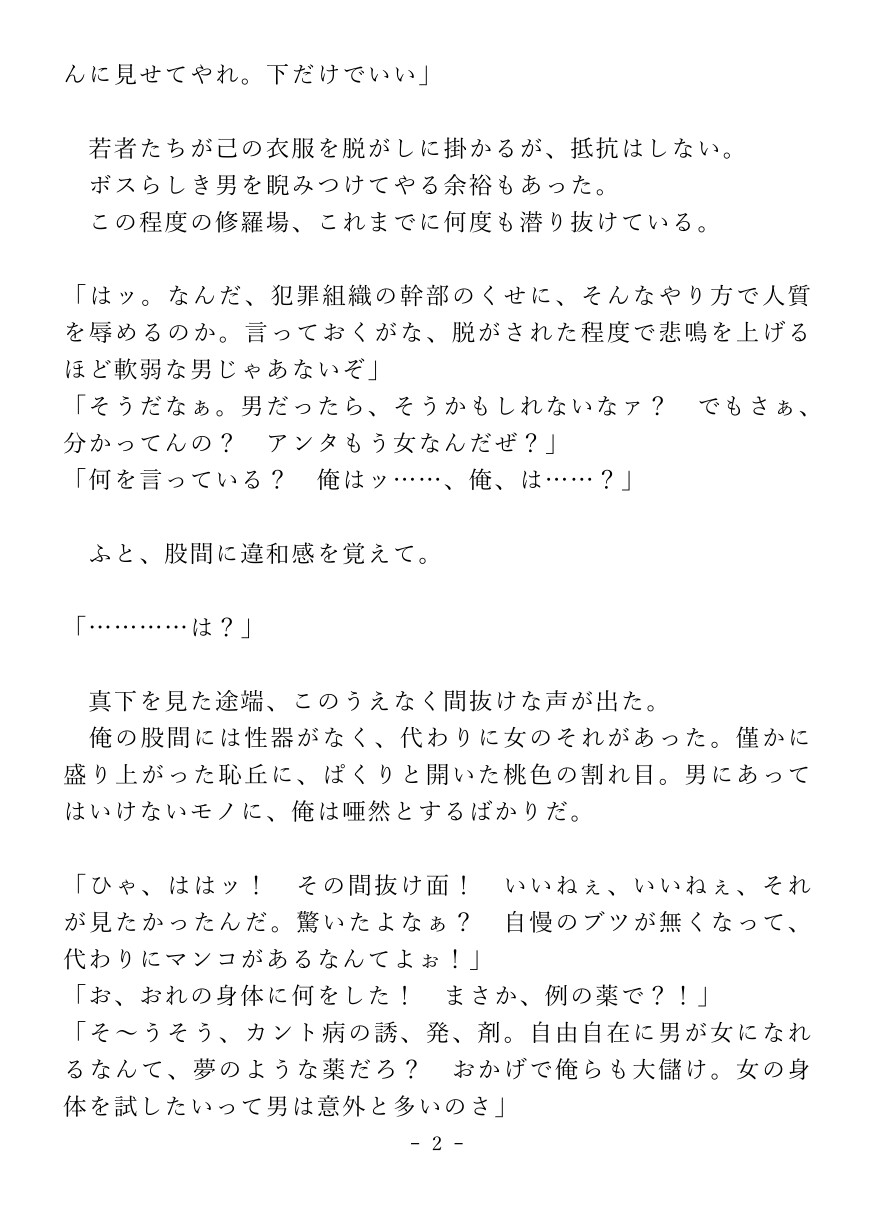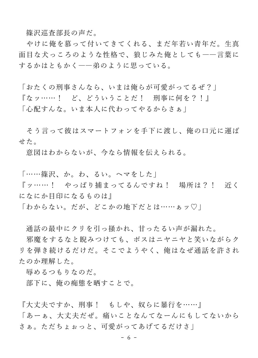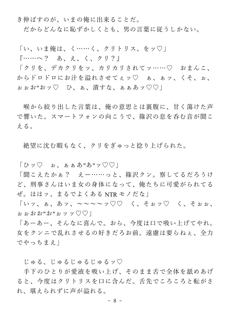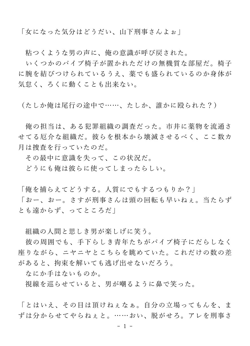 薬物で強○的にカントボーイ化させられた堅物刑事が快楽○問でイキ狂っちゃうお話。