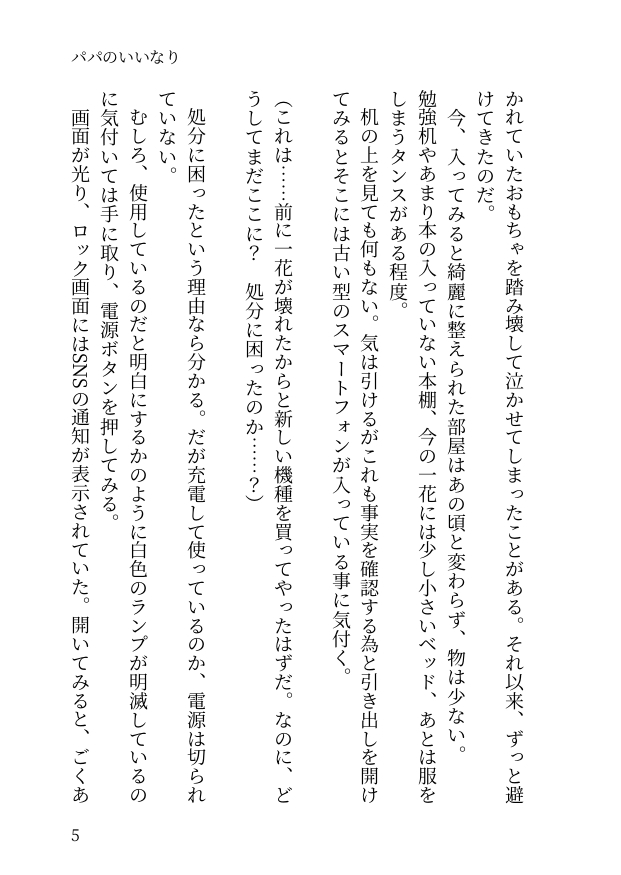 すると、一花は父親に親子という一線を越えた関係になりたいと思っている事に気付いてしまい……。