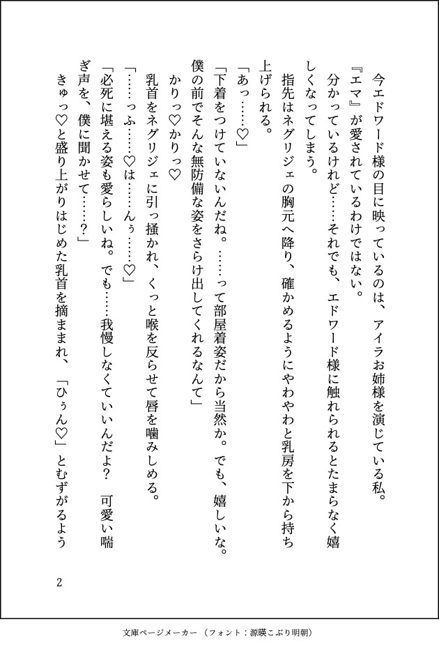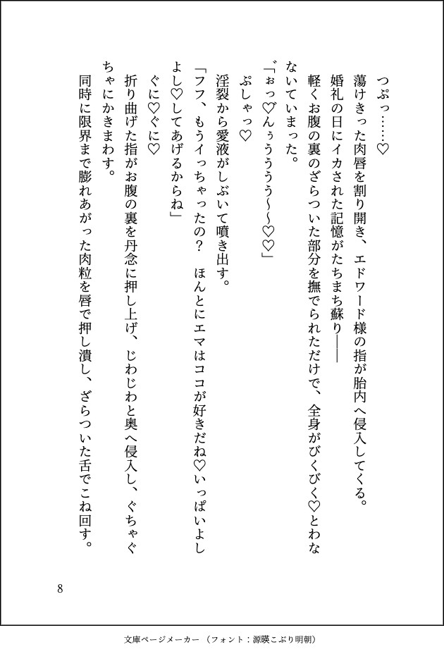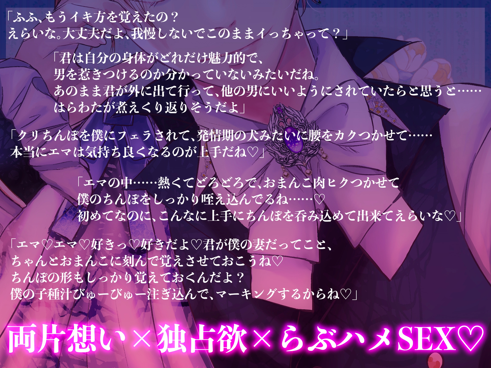 「エマ♡エマ♡好きっ♡好きだよ♡君が僕の妻だってこと、ちゃんとおまんこに刻んで覚えさせておこうね♡ちんぽの形もしっかり覚えておくんだよ? 僕の子種汁びゅーびゅー注ぎ込んで、マーキングするからね♡」とたっぷり中出しされるのだった。