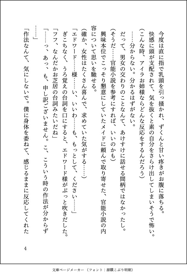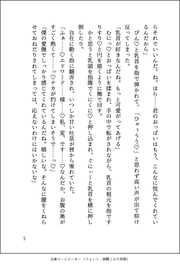 婚礼の日の夜、初夜を迎え緊張するエマに、エドワードは優しく手ほどきをしてくれる。