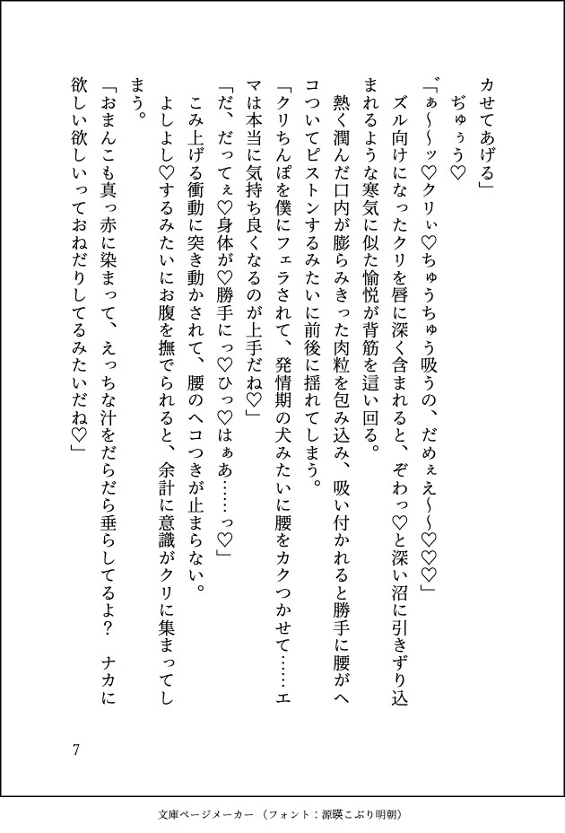 「クリちんぽを僕にフェラされて、発情期の犬みたいに腰をカクつかせて……エマは本当に気持ち良くなるのが上手だね♡」