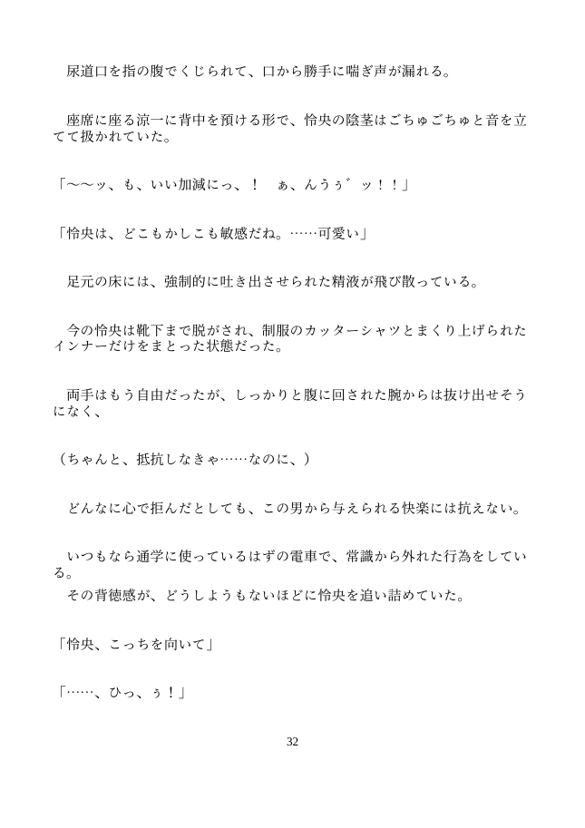 | ジャンル: | 電車 / 命令/無理矢理 / 潮吹き / 乳首責め / 中出し / |
