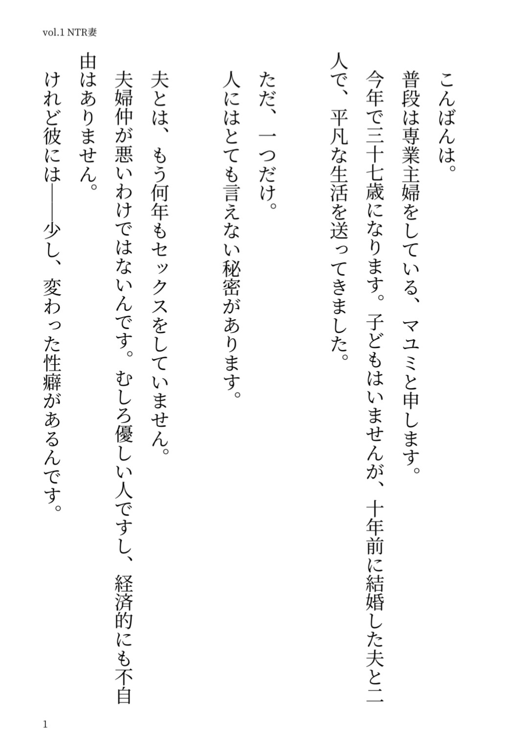 これは、一人の主婦が背徳のセックスに溺れていく、甘く淫らな実話です。
