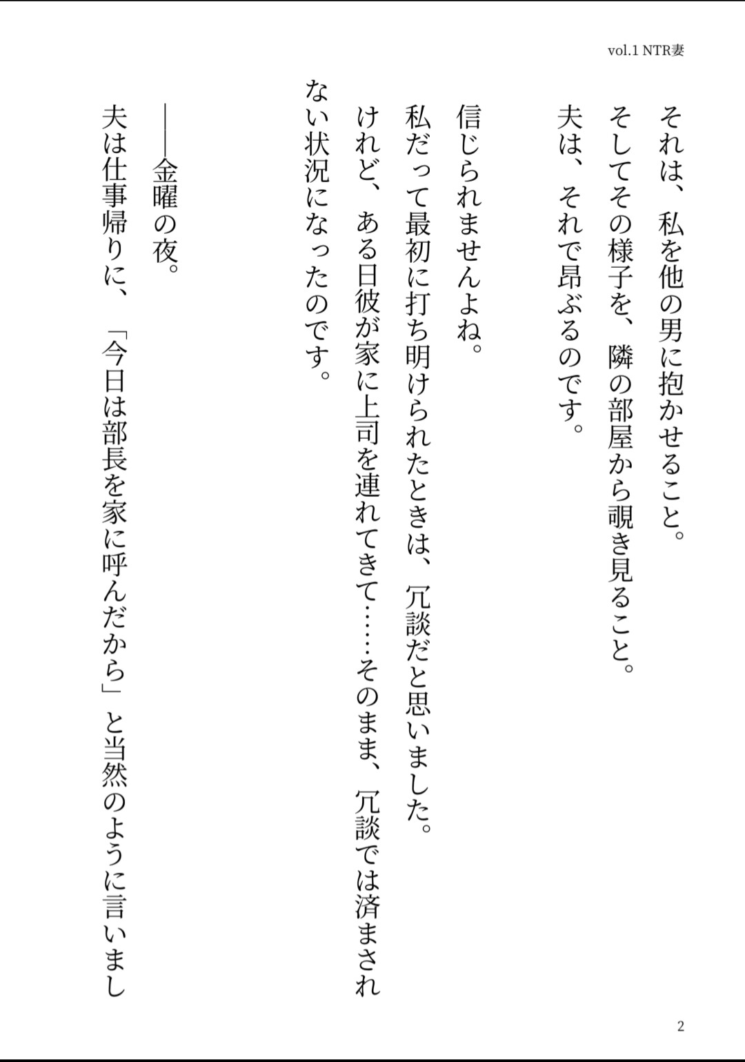 十年目の結婚生活。 子どももおらず、夫との営みも途絶えて久しい――そんな平凡な専業主婦の私。 けれど、ある日を境に“夫婦の秘密の遊び”が始まってしまう。 夫の望みは、私を別の男に抱かせ、その姿を見守ること。 最初は戸惑いと羞恥でいっぱいだったけれど……