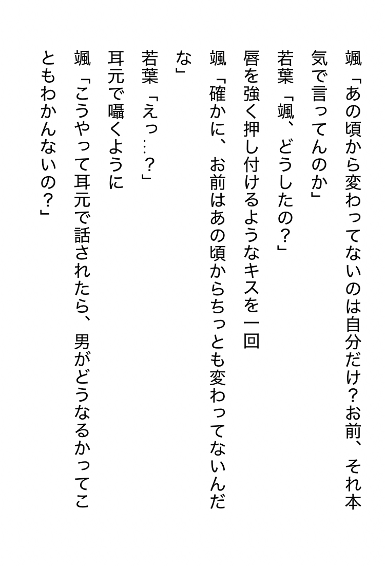 颯と若葉は小さい頃から一緒に育った幼馴染。ずっと好きだったけどその思いを伝えられないまま、若葉は別の男に取られてしまった。高校を卒業したあとは颯だけ上京し、本当に離れ離れに。大人になり久しぶりに田舎に戻ると、若葉の隣にはもうあの男はいなかった。 汗がにじむ夏の夜、彼女の実家で20年越しの熱い夜を過ごす。