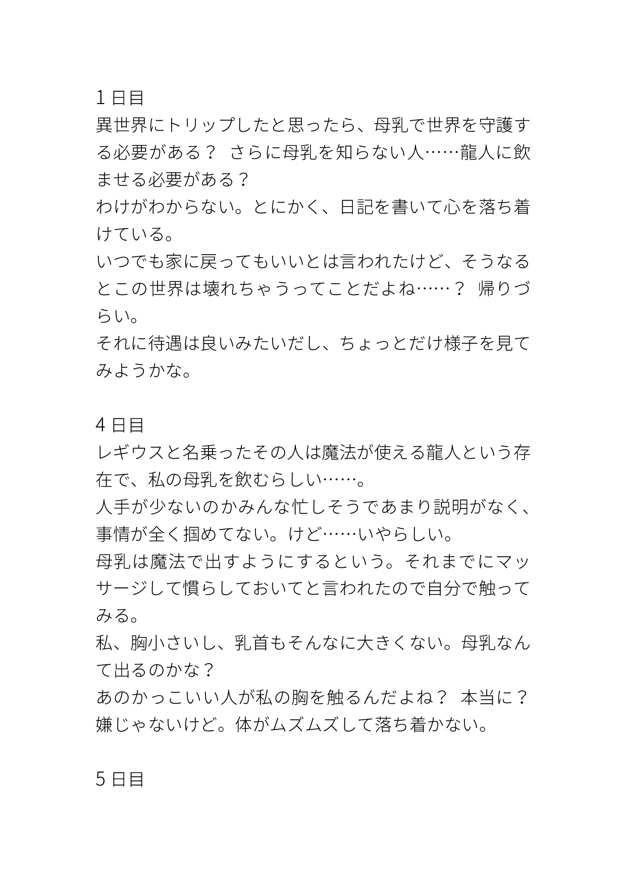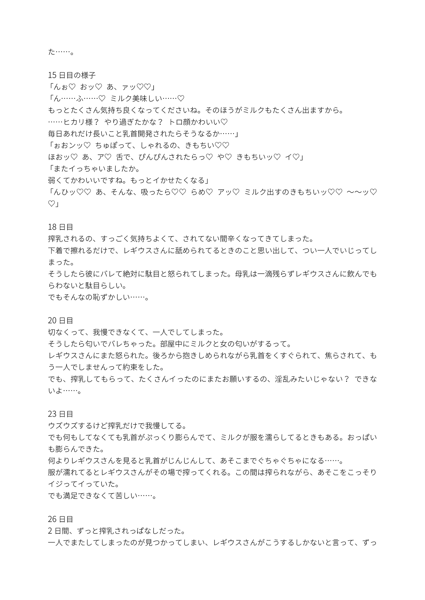 異世界トリップしたら魔力が宿る母乳を分けてほしいと言われ、流れるまま受け入れるヒカリ。レギウスという敬語のイケメンに乳首を責められ、搾乳され、子宮までいじめられていき、体はどんどんいやらしく作り変えられていきます……♡