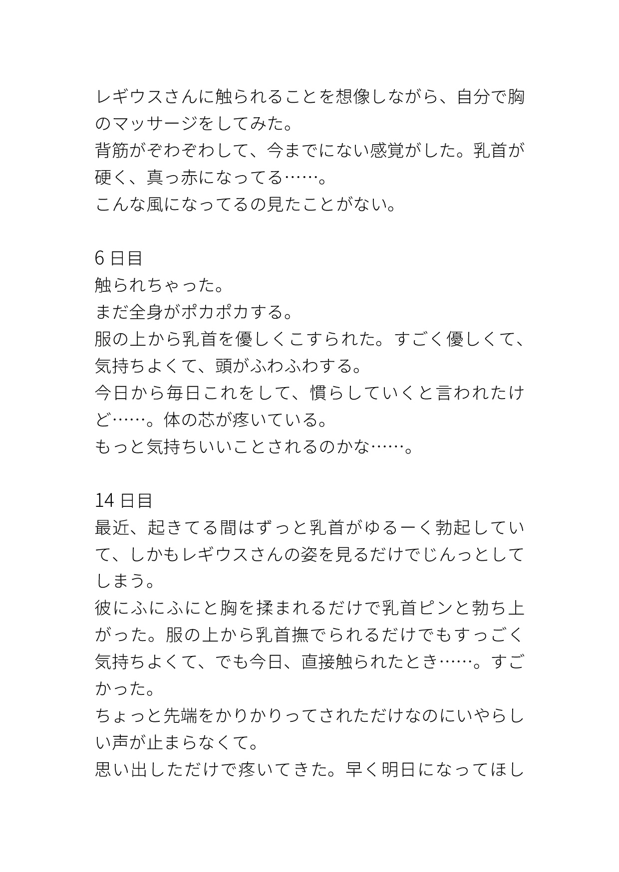 レギウス:敬語のイケメン、だけど昂ぶるとやや乱暴な口調に。じっくりゆっくり責めるのが好き。絶倫で火がつくと何日も止まらない。