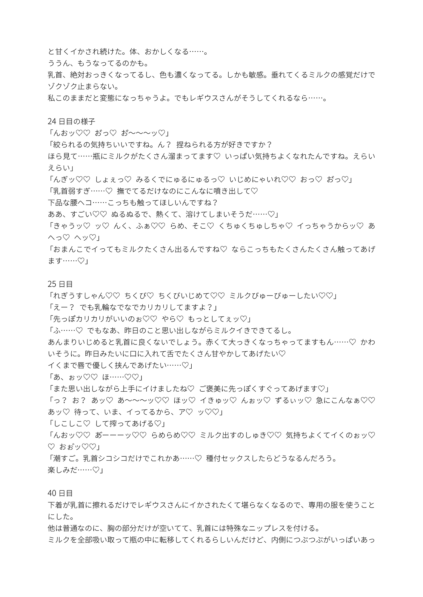 突起付きのニップレスで乳首責め、数日に渡るセックス、オナニー我慢、発情など。