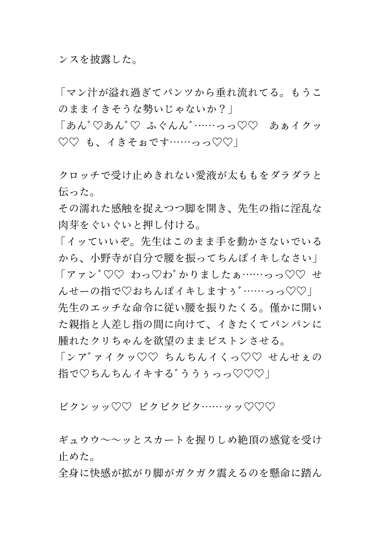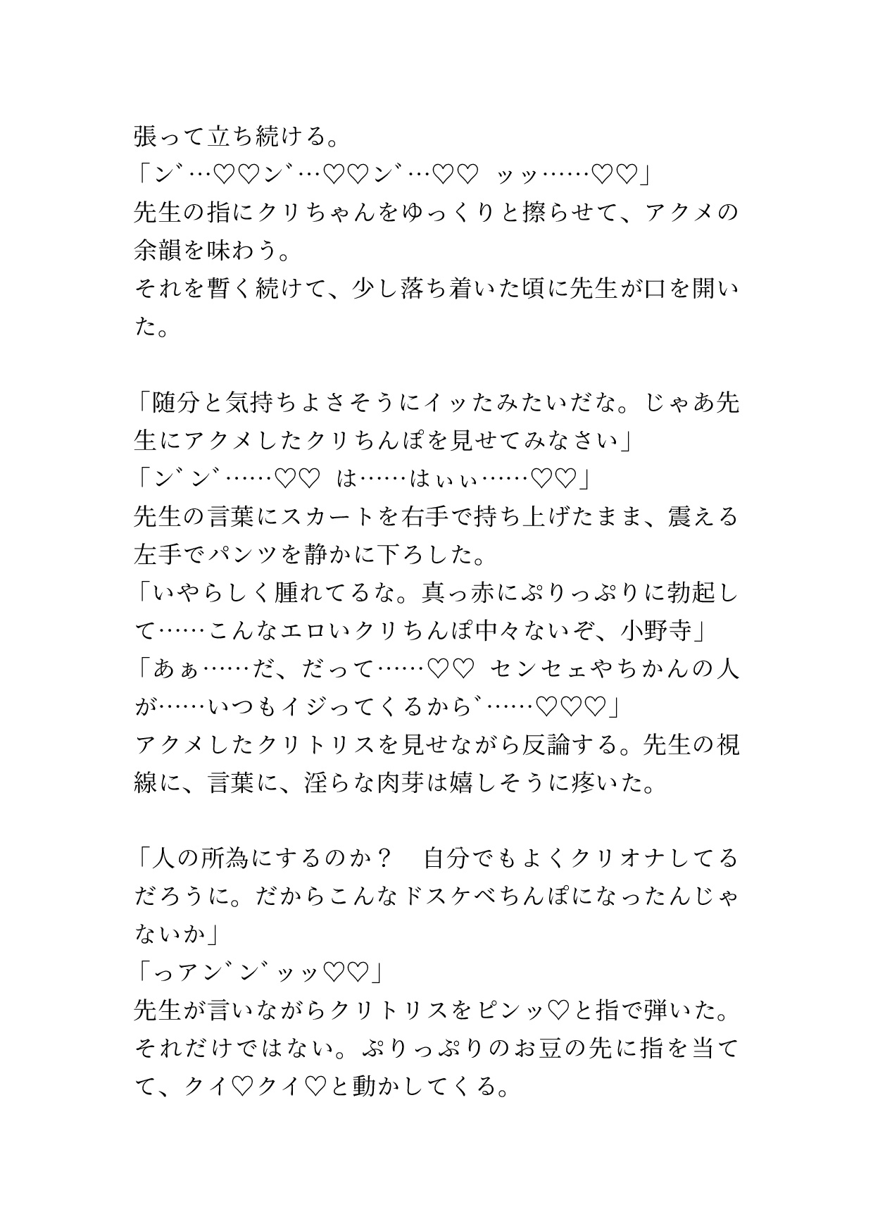 常識改変、教師×生徒、クリ責め、連続絶頂、中出し、羞恥、隠語、ハート喘ぎ、濁点喘ぎ、擬音表現(オノマトペ)