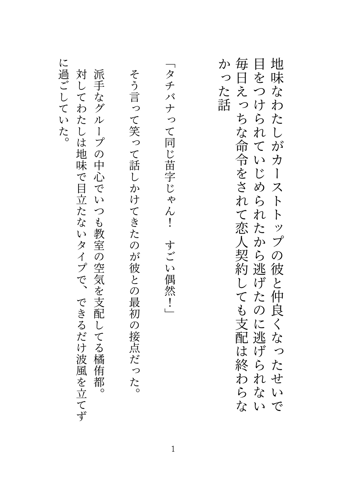 カーストトップの彼と仲良くなったことがきっかけで、地味な彼女はクラスから孤立──やがて始まる理不尽な支配。恋人になっても、その命令は終わらない。