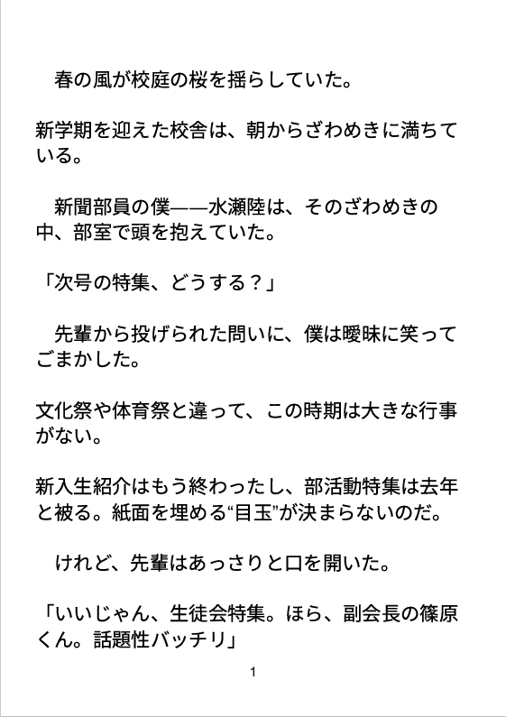 だが新聞部員の水瀬は、取材を重ねるうちに、彼の意外な一面を知ることになる。