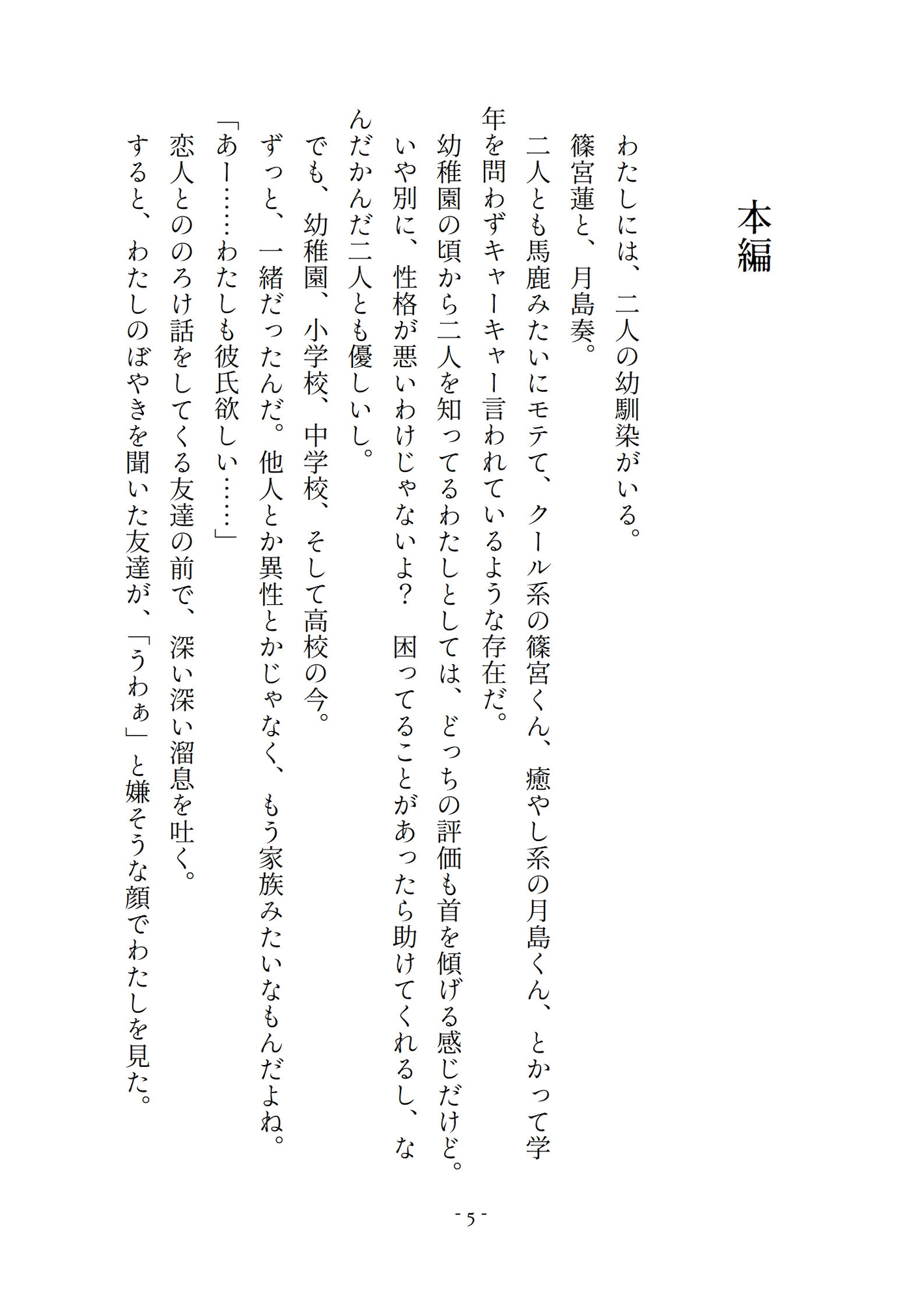 学校中の女子が憧れる二人だけど、物心ついた頃からずっと一緒のわたしにとっては、もう家族みたいなもの。