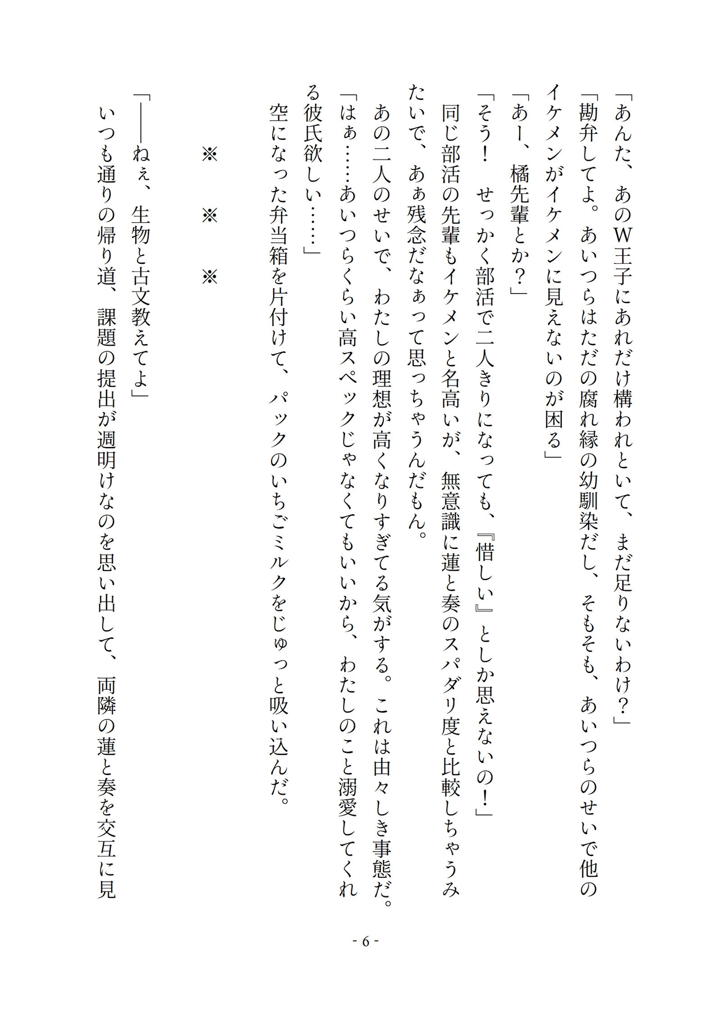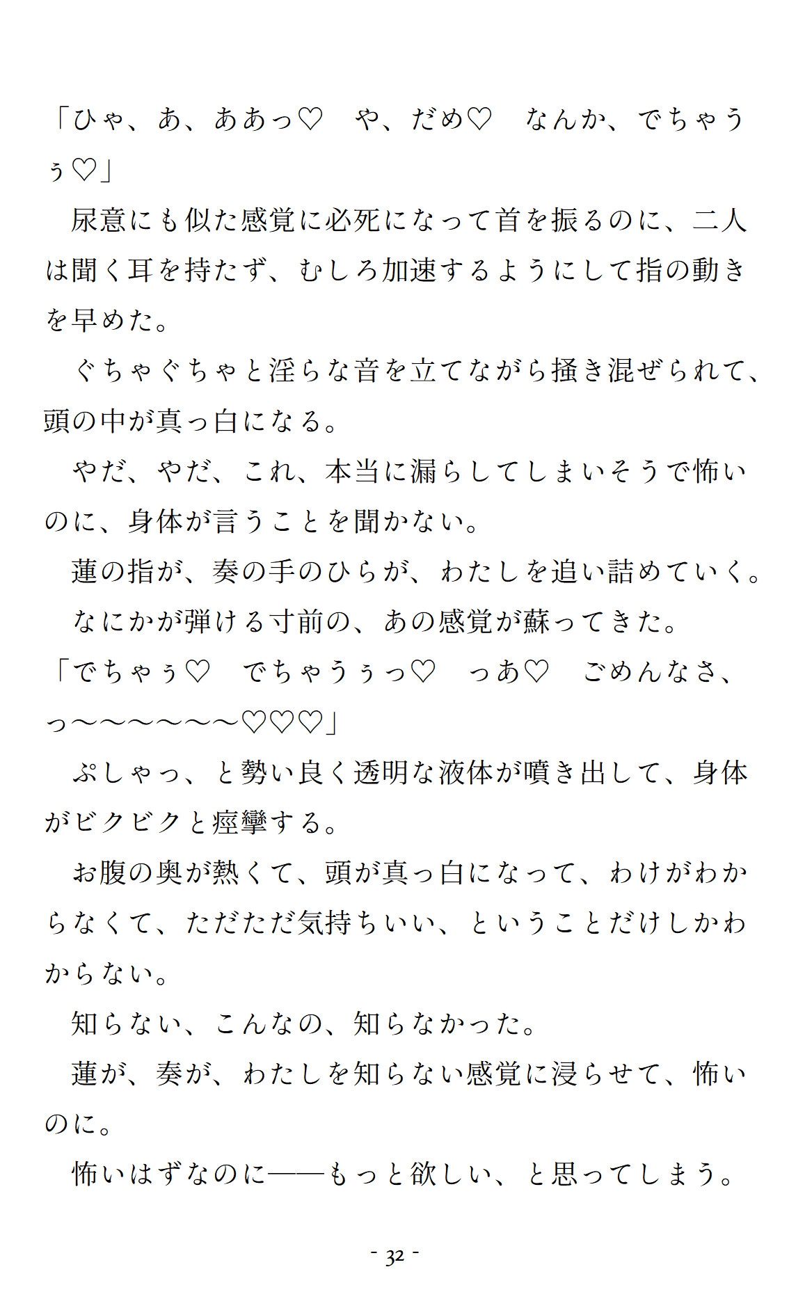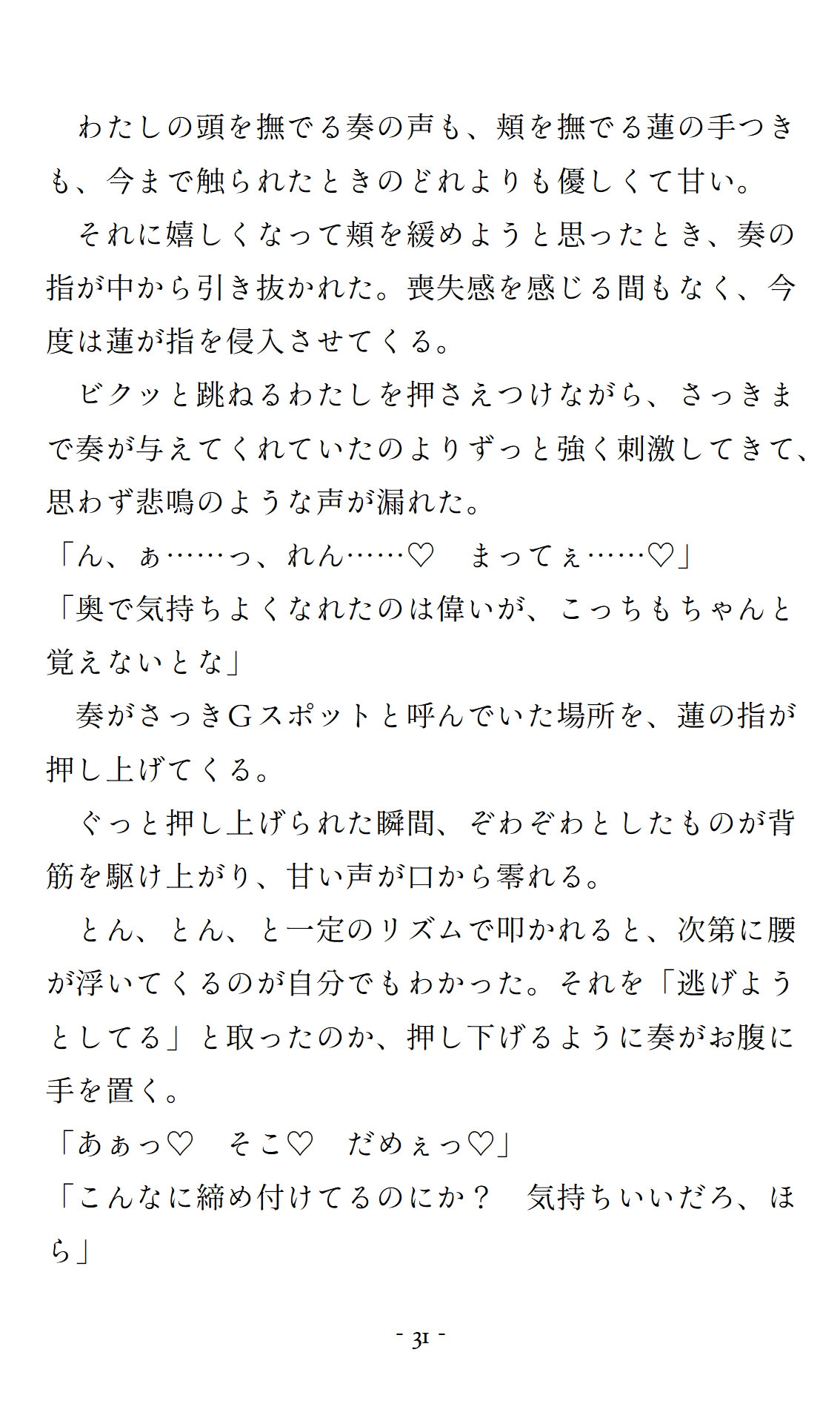 クールなはずの蓮に理詰めで身体の反応を確かめられ、優しいはずの奏に甘い言葉で逃げ道を塞がれていく。