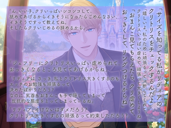 小さい頃、助けてもらってからずっとルシアンのお嫁さんになることだけ考えて生きてきた。お見合いをしているところを目撃して、いてもたってもいられず、ルシアンは私と結婚する!と抱き締めに入ると、まさかのルシアンも同じ気持ちだった、、、!? ようやく好きな人の特別になれると喜んでいたのも束の間、ルシアンが治めているカリス領には、花嫁になるためにはクリアしない条件があって、、 クリトリスをリングにはめること、、!?