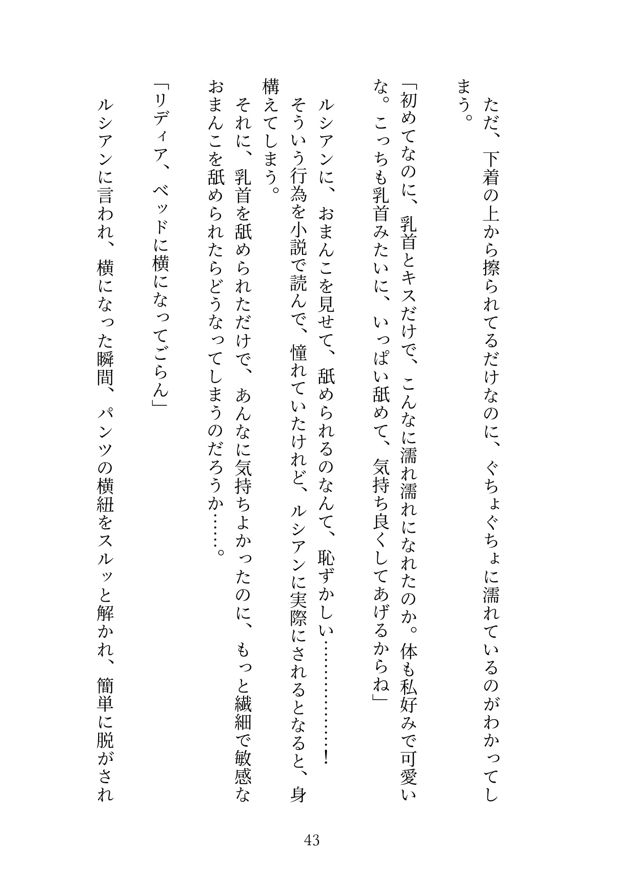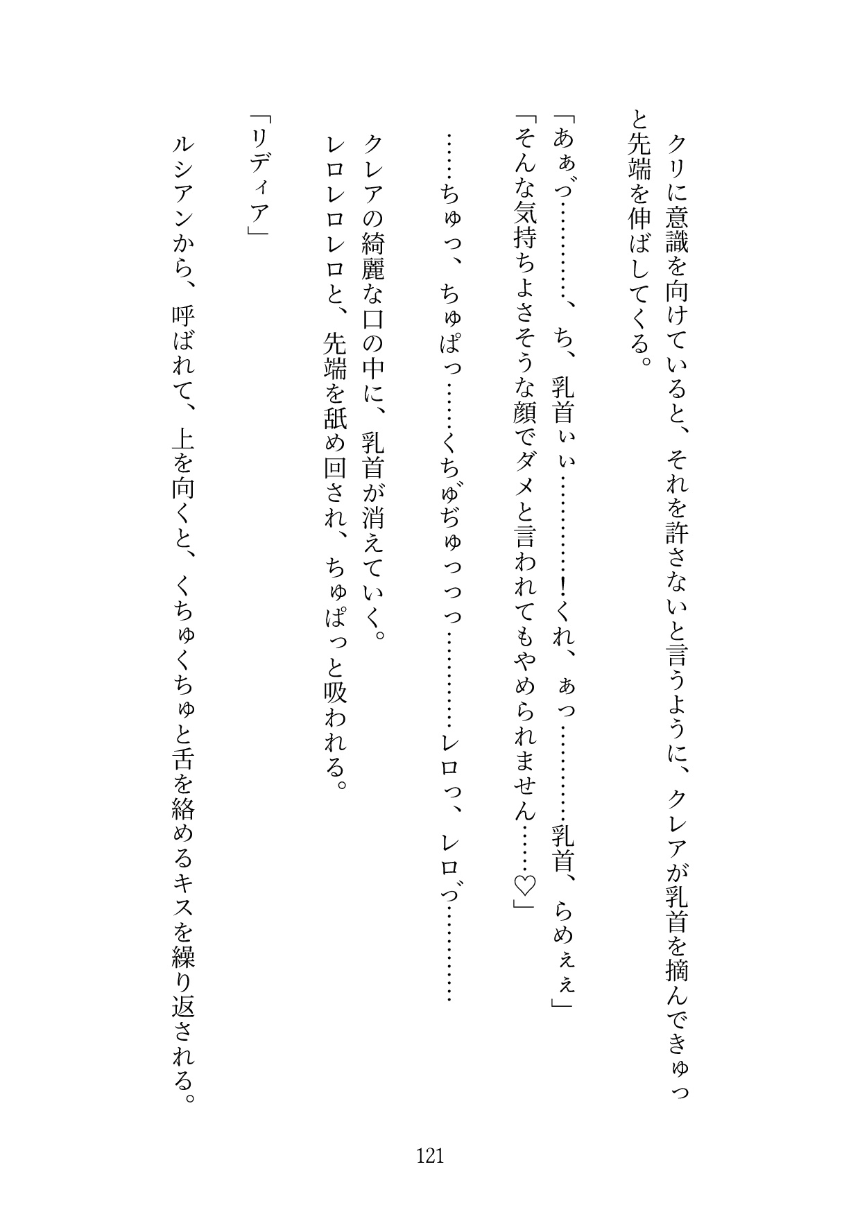 ・主人公が、3人に責められる描写があります「サイズを知ってる私がリディアのクリトリスをチェックするんだよ」