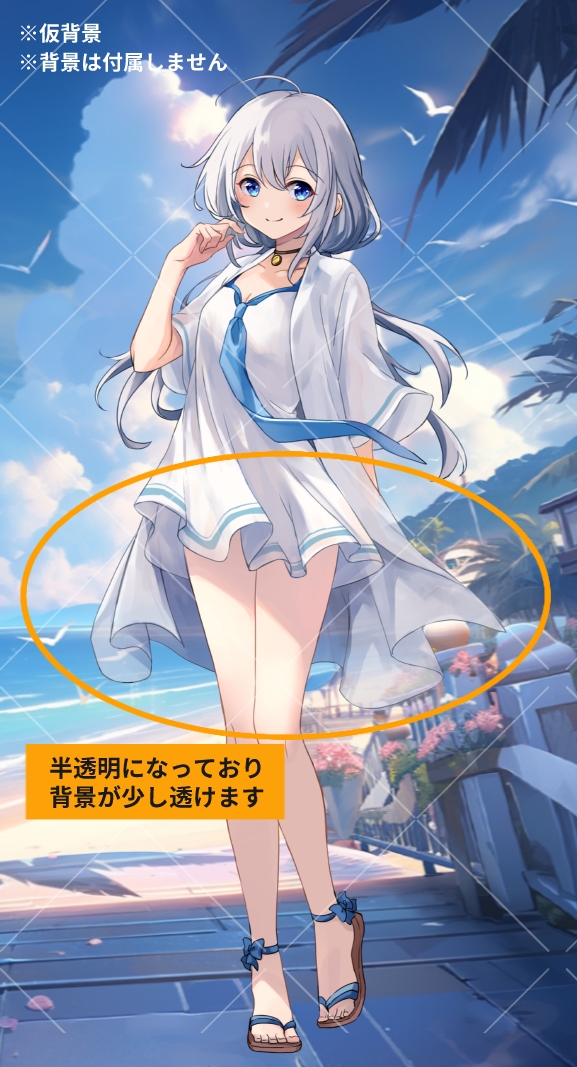 夏、海、水着のイメージ。薄着の感じを出したかったので服の裾が少しだけ透けます。