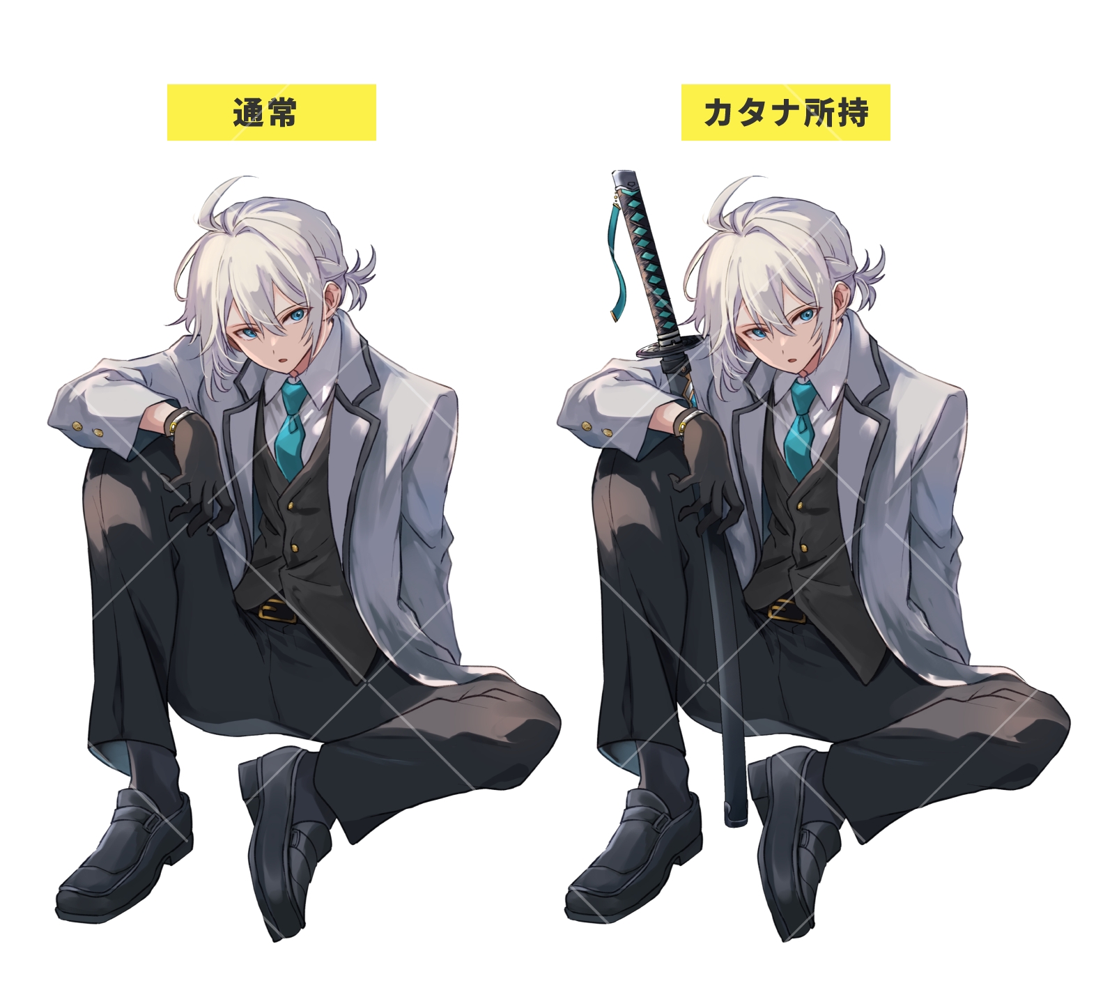 通常の立ち絵と、カタナを所持した立ち絵のセットです。