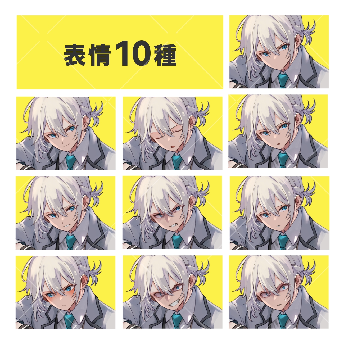 表情差分付きの立ち絵です。TRPG、動画、ゲーム、アイコン、挿絵等でご利用いただけます。