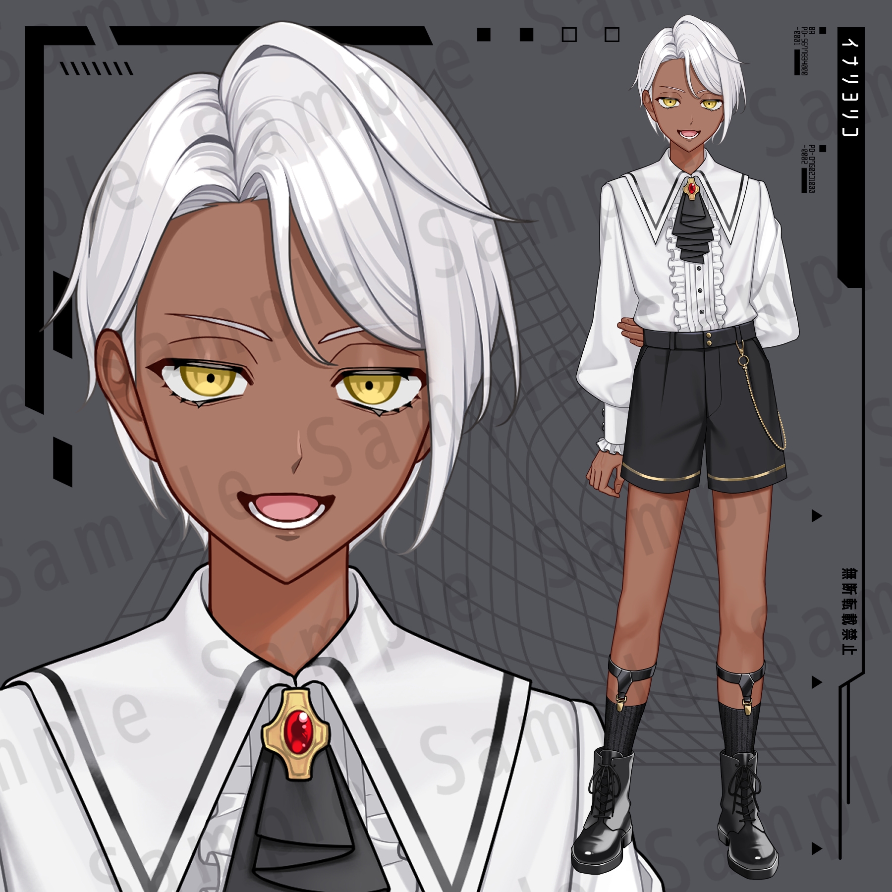褐色・金眼・白髪のミステリアスな少年の立ち絵素材です。TRPG、自作ゲーム、動画の登場人物などにお使いいただけます。