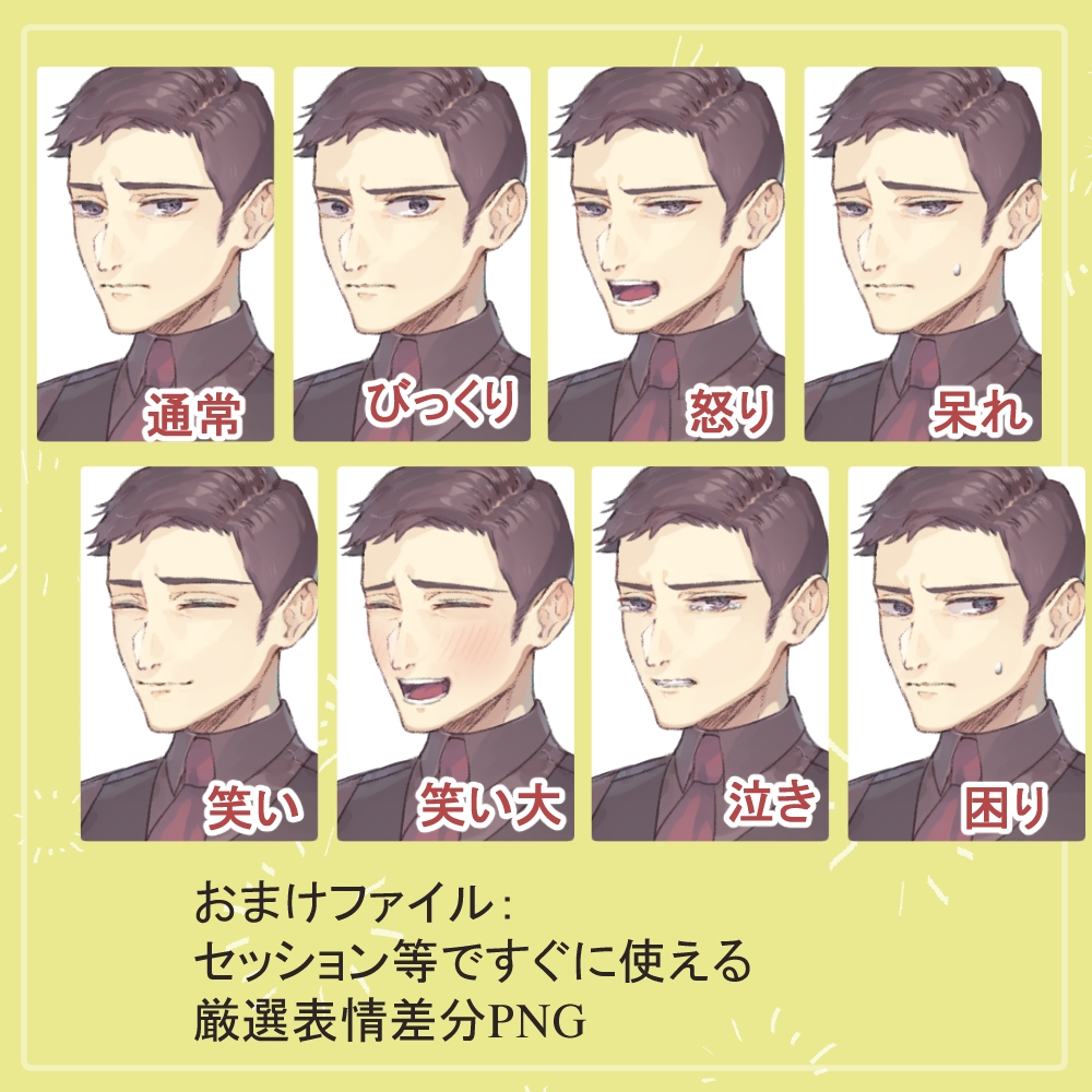 厳選した表情差分PNG・8個のおまけファイルも同梱