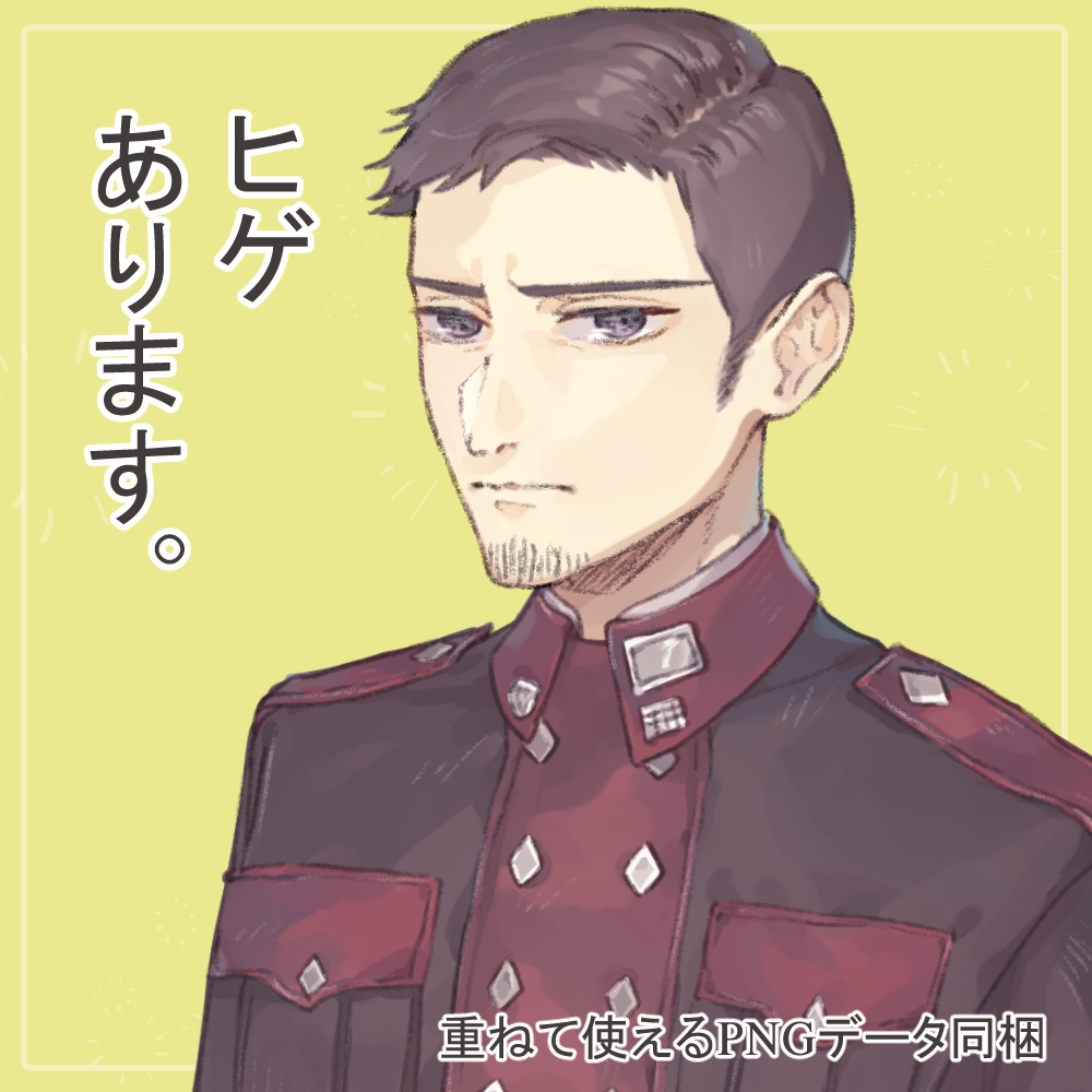 「七三分けの軍人男の私服と制服(軍服)の全身立ち絵SET(表情差分付きのパンプキンヘッドetcオマケパーツ付) (RJ01500565)」