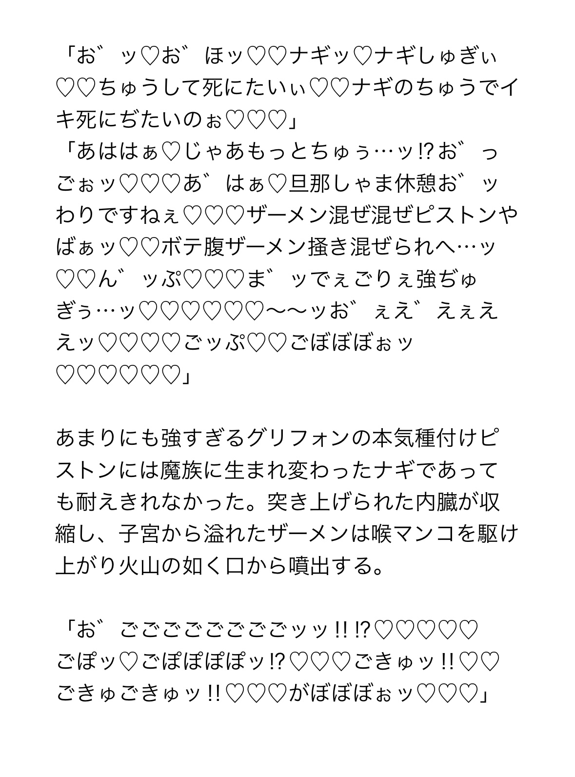 ハート・濁点喘ぎ/異種姦/産卵/NTR/肉体改造/淫紋/メス堕ち/リバ有り/ボテ腹…etc
