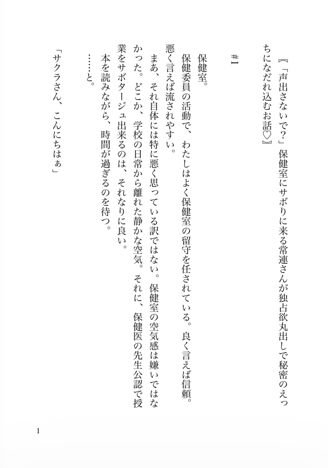 保健委員のサクラ。保健室にいつもサボりに来るノゾムに少し冷たく対応していると、ノゾムはサクラを目当てで保健室に来ていると言ってきて……?