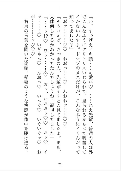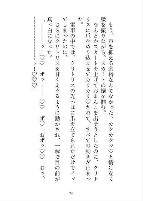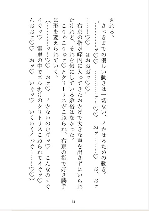 ・電車の中でイッたら負けの勝負をしかけられ、イッていないと言い張りながら、クリトリスの皮を剥かれてズル剝けのクリトリスをたっぷりいじめられる