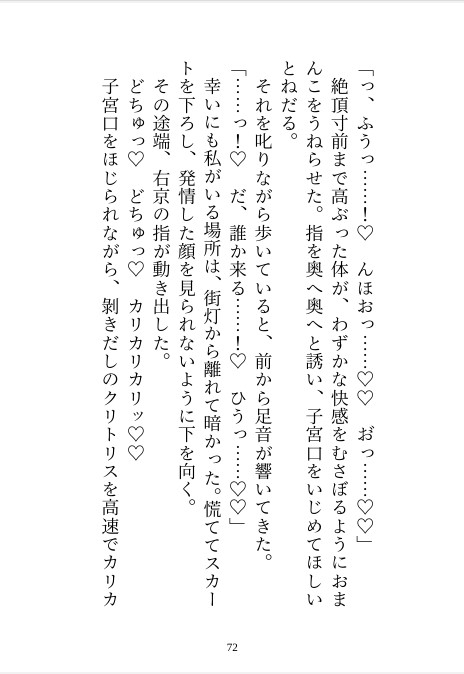 ・電車を降りた後、指を入れられてクリトリスをいじめられながら、右京の家へ向かう。スカートをあげて露出している間だけは指を動かさないと言われて……