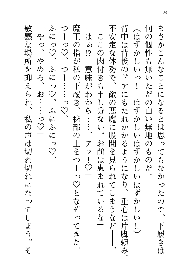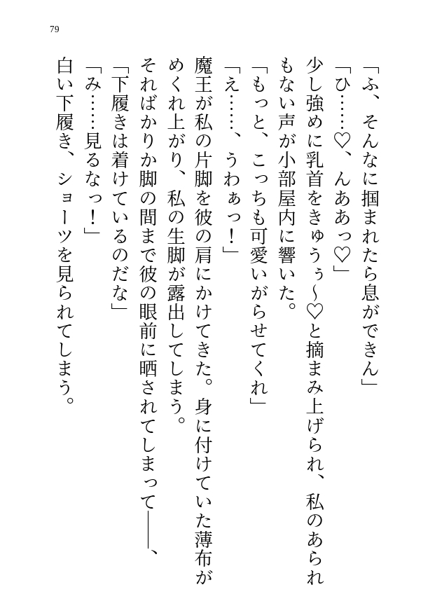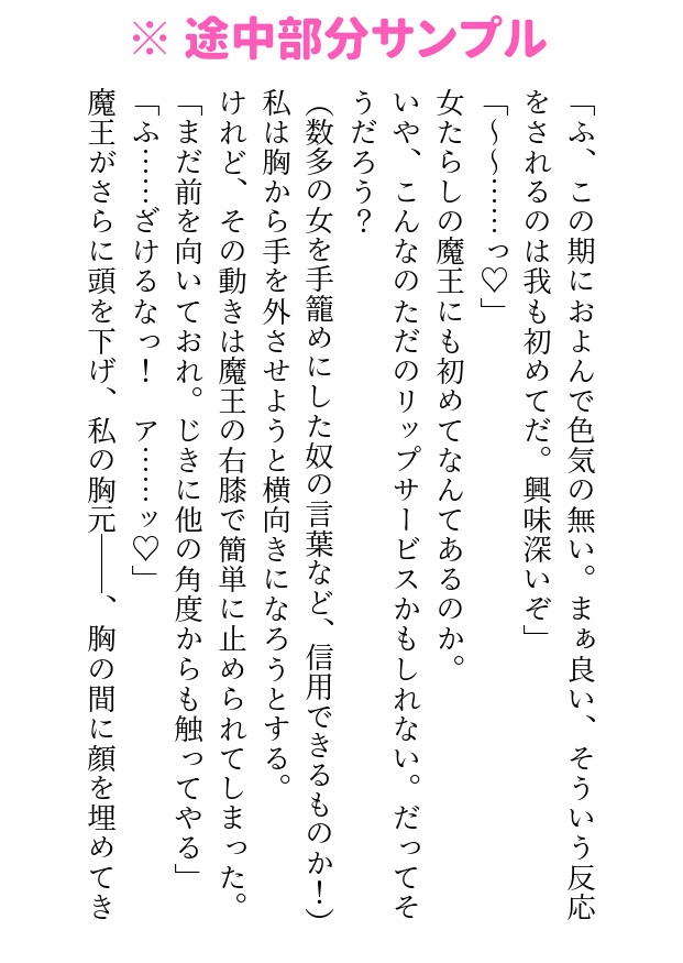 『女性たちの生気が吸われている。これは岩窟城に住む女たらしな魔王の仕業だ』勇者である主人公の私は、街のピンチを救うため魔王の棲む城へ向かうことにした。けれど、私と魔王は敵同士にも関わらず、お互い恋♡に落ちてしまって……。「意地でもこの恋心を相手に知られたくない!」と思いバトルを開始するが、不測の事態からある場所に閉じ込められてしまう。そこは性交しないと出られない呪いの小部屋『セックスしないと出られない部屋』だった!