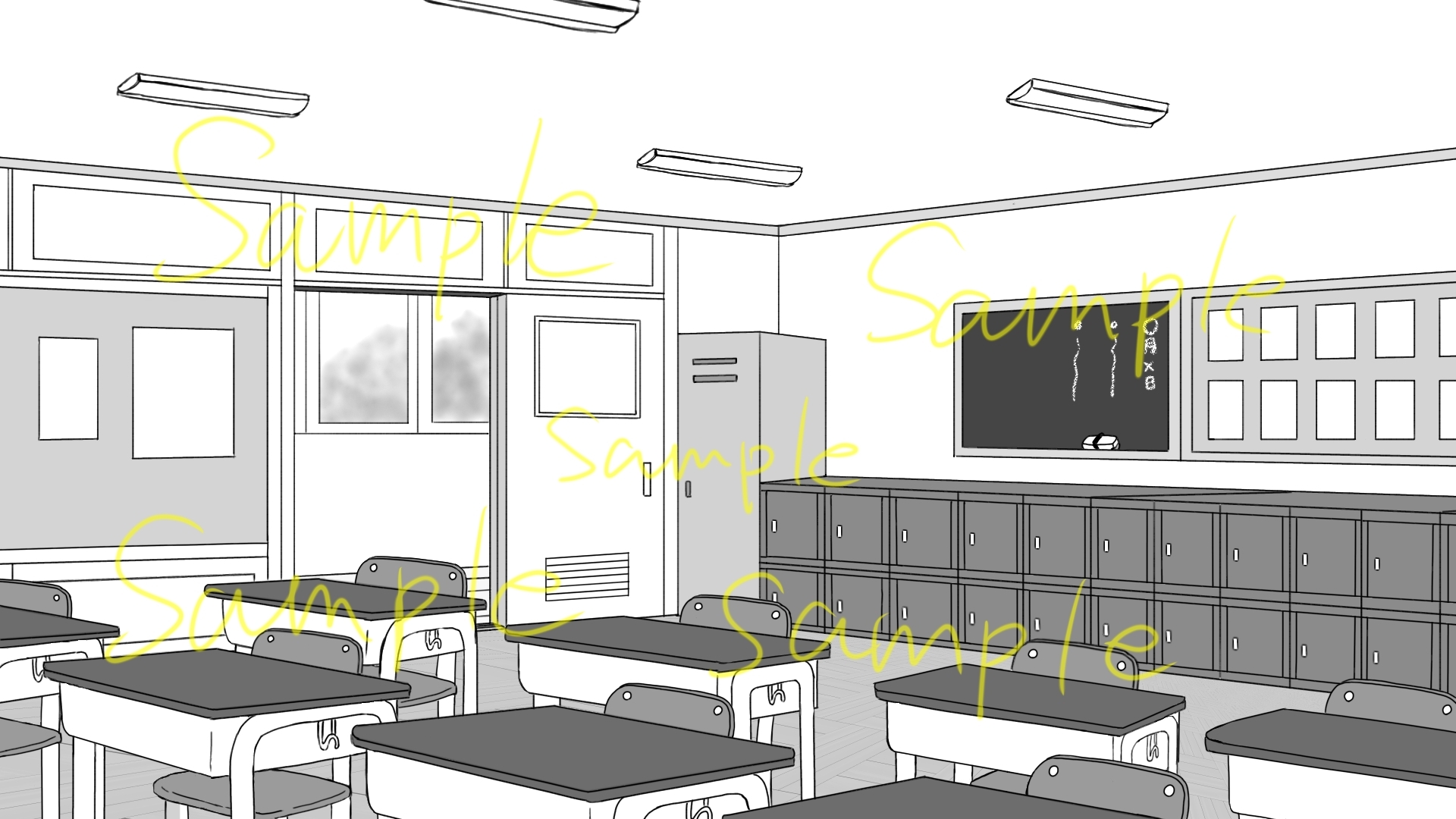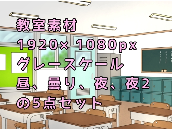 すべてpng、350dpi、1920×1080pxです。 1.グレースケール 2. 昼 3.曇りの日 4.夜 5.夜2(教室内点灯)イラスト背景や動画配信などにも使えます。