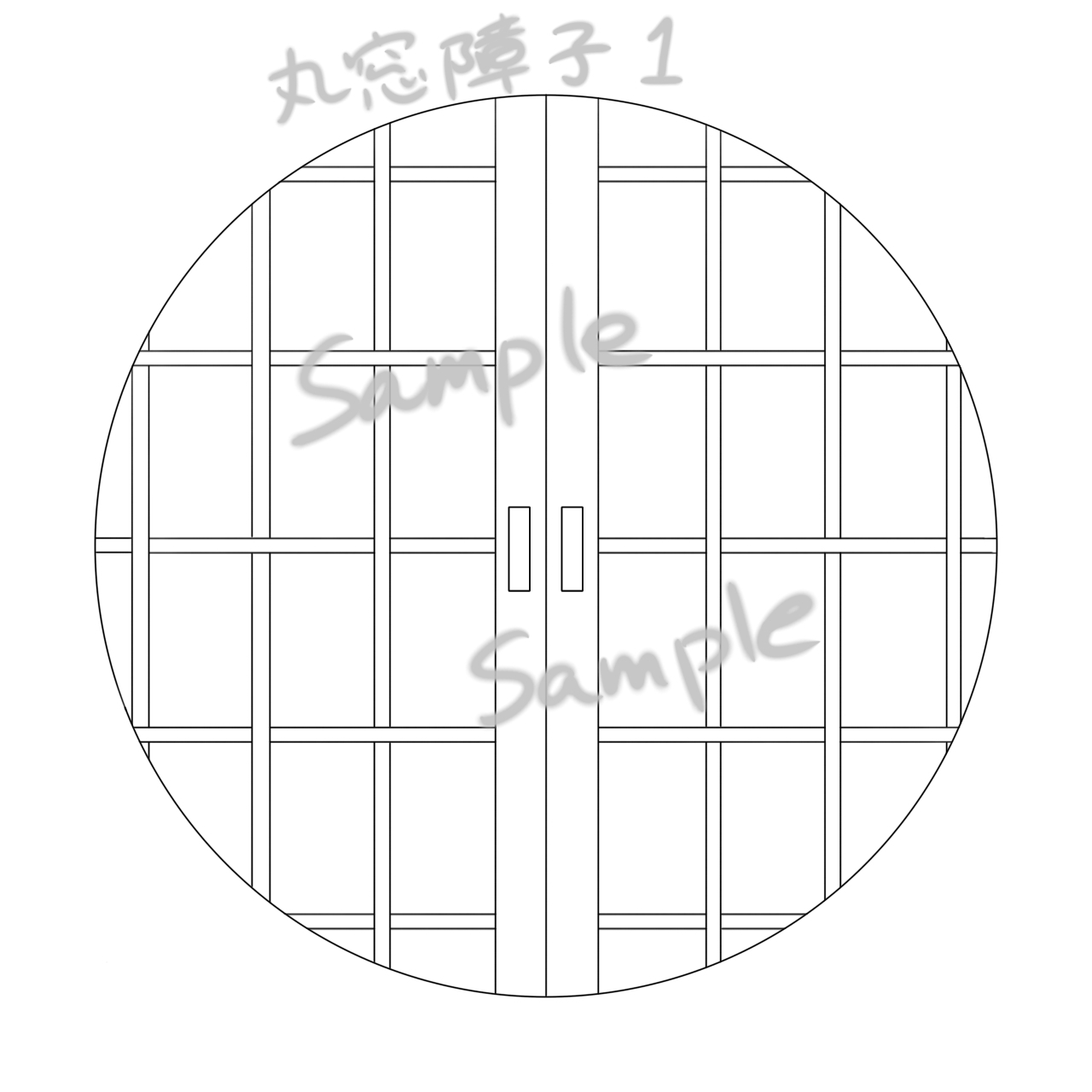 丸窓障子1,2 1280×1280px 線画のみ・色つき背景透過の系4点