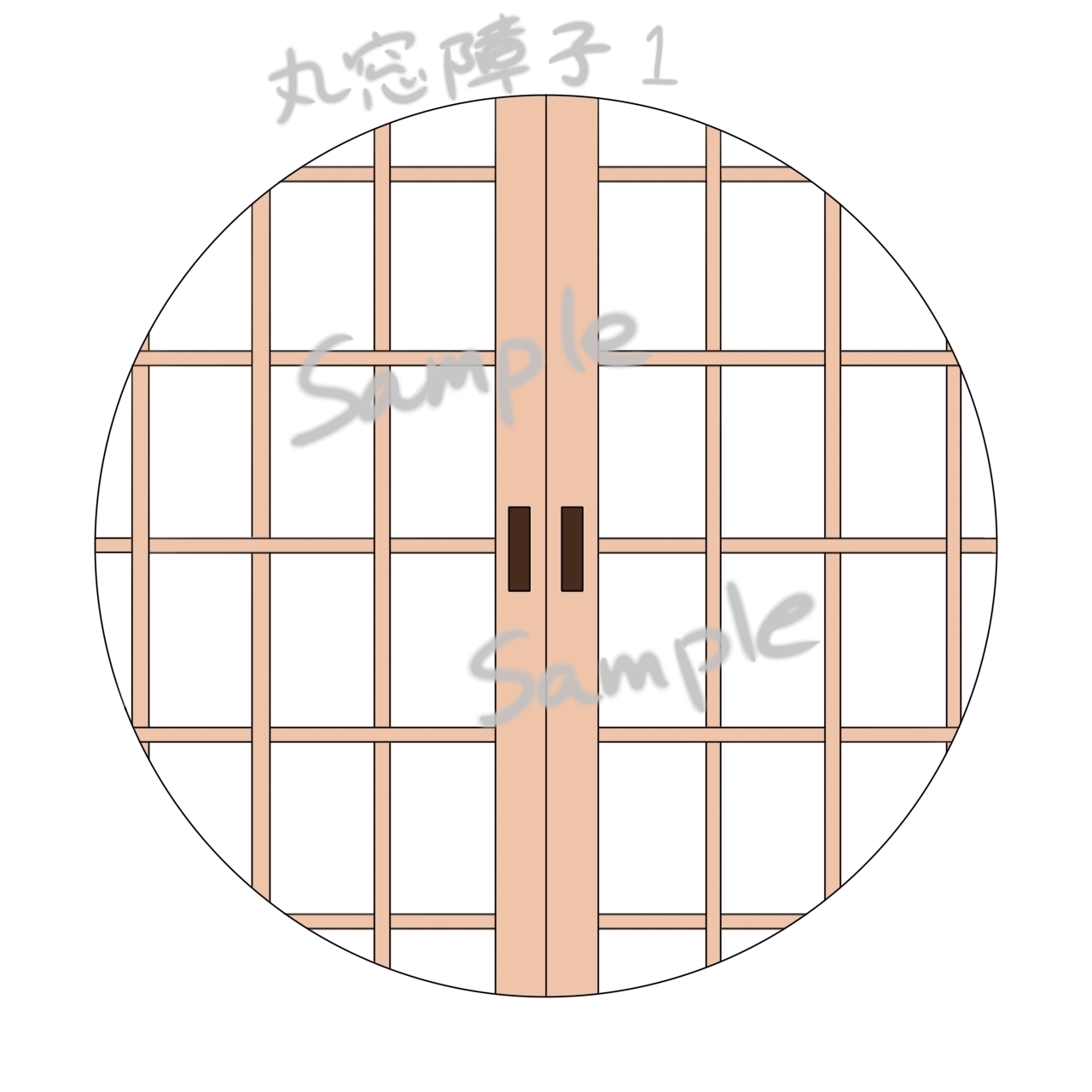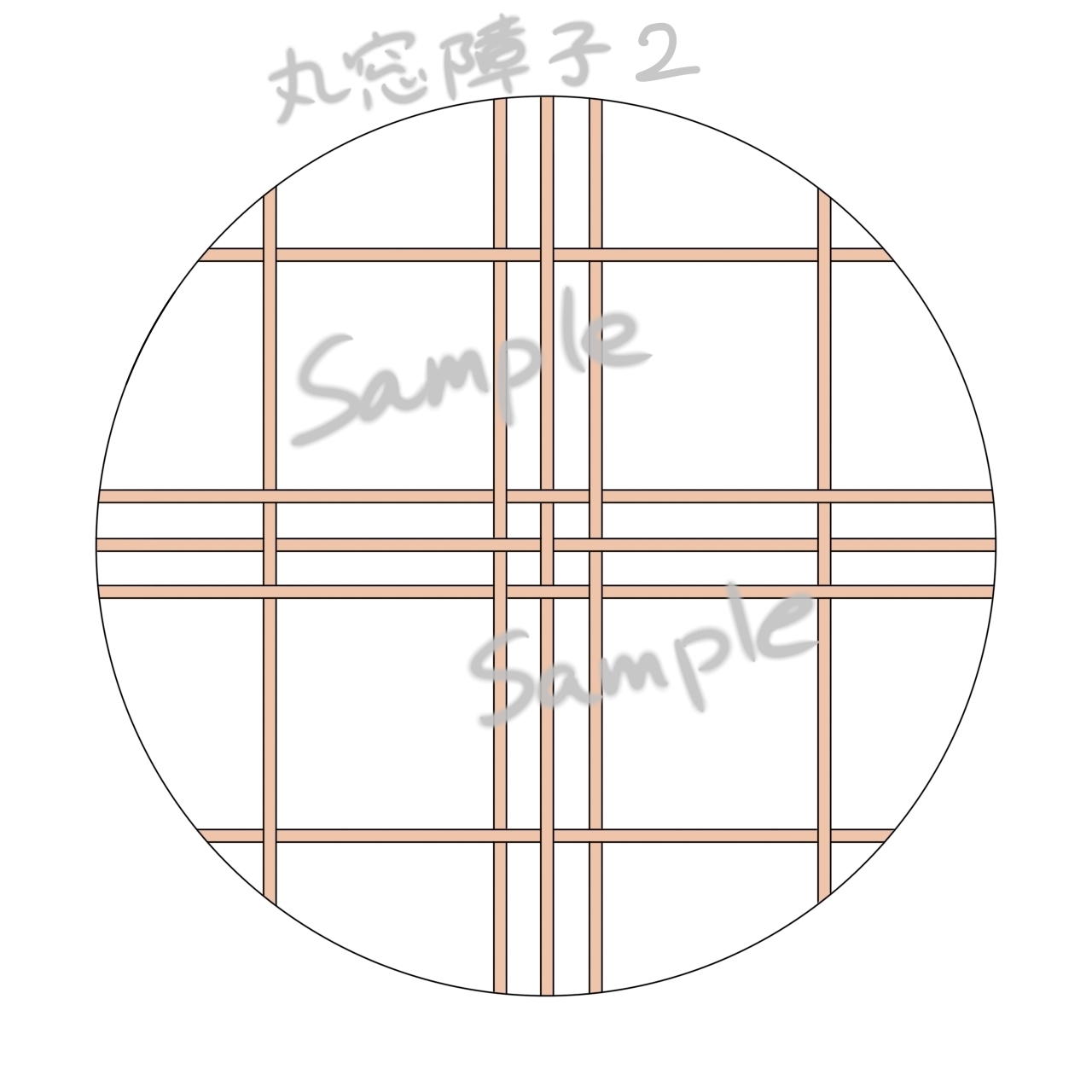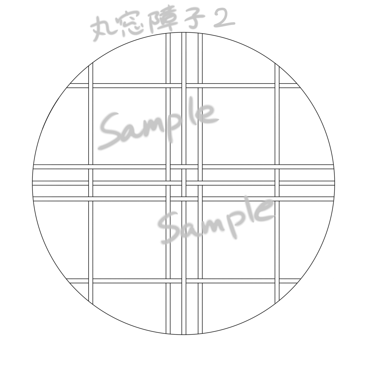 背景素材。和風素材。丸窓障子4点セット。1280×1280px、350dpi。線画のみと色付き透過素材。使用用途フリー。