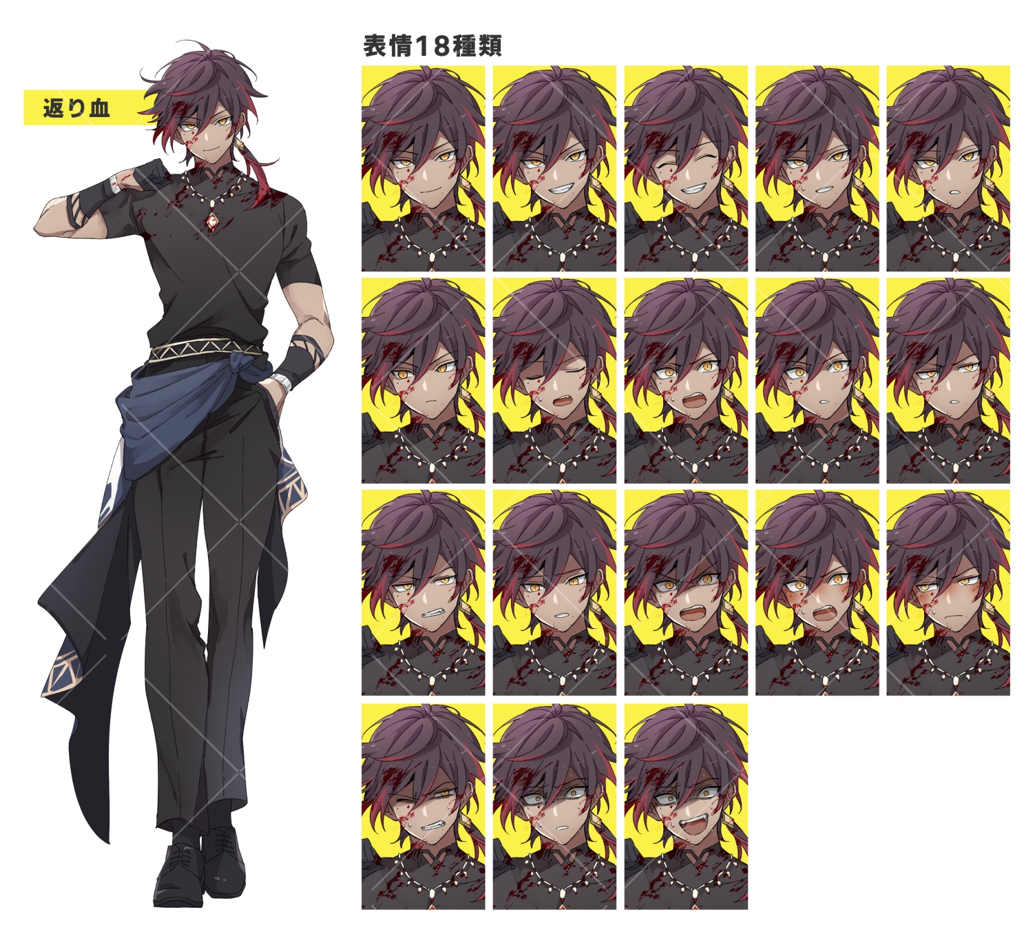 返り血のみの画像も同封しているので、通常立ち絵に対して差分切り替えで装着することもできます。