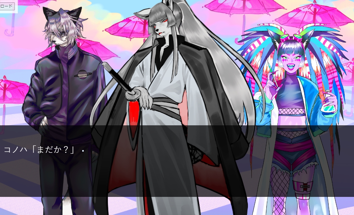 ゲーム画像はティラノビルダーさんを使用して立ち絵が正常に機能するか確認したものになります。
